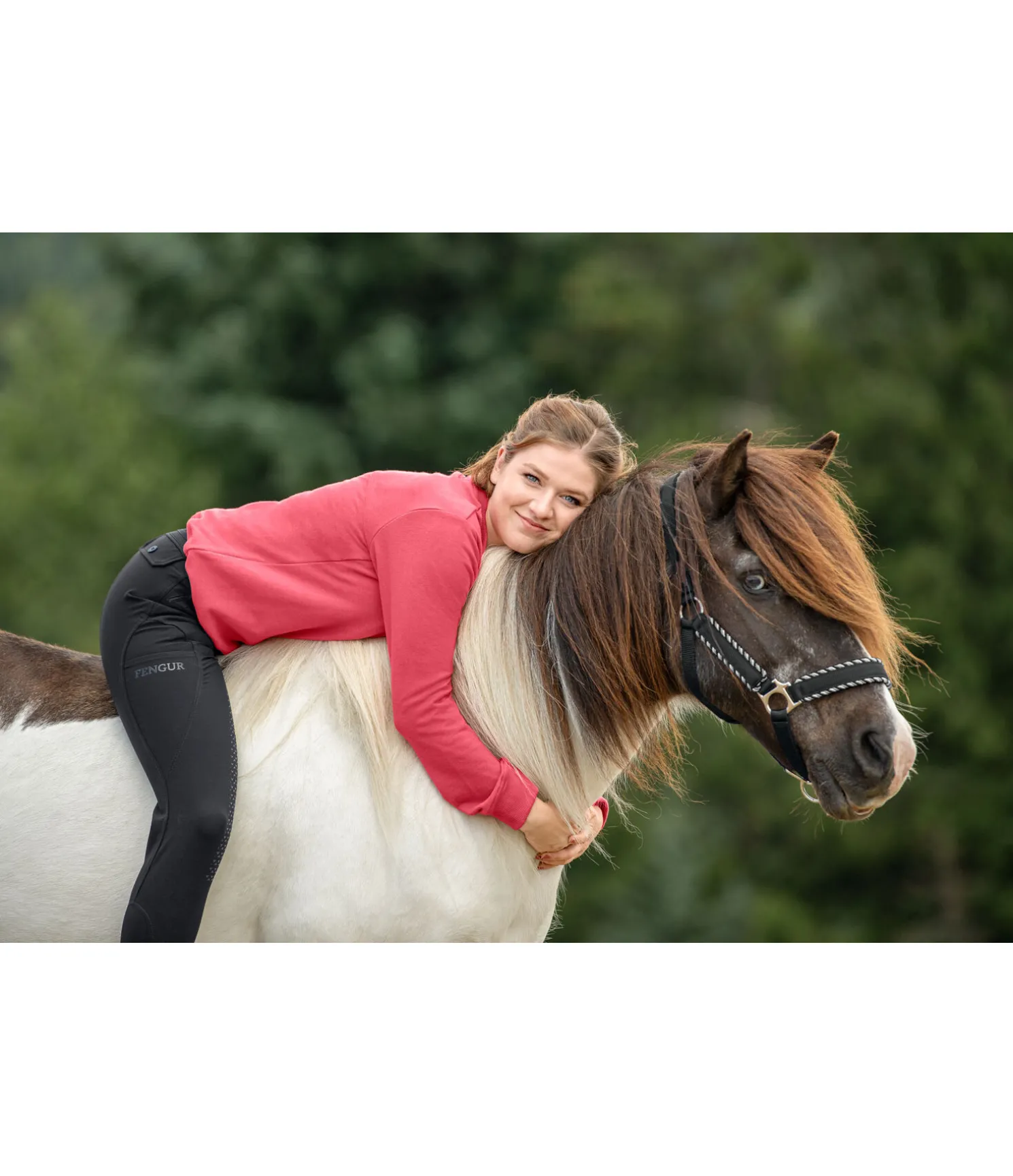 Sweat décontracté élastiqué au niveau des hanches. Grand motif à l’avant. Matière respirante. 65 % coton, 35 % polyester.