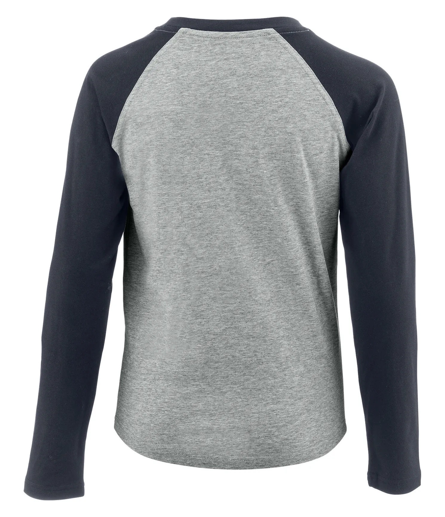 T-shirt à manches longues bicolore. Look décontracté avec motif western sur la poitrine. Manches raglan et col rond. 94 % coton, 6 % élasthanne.