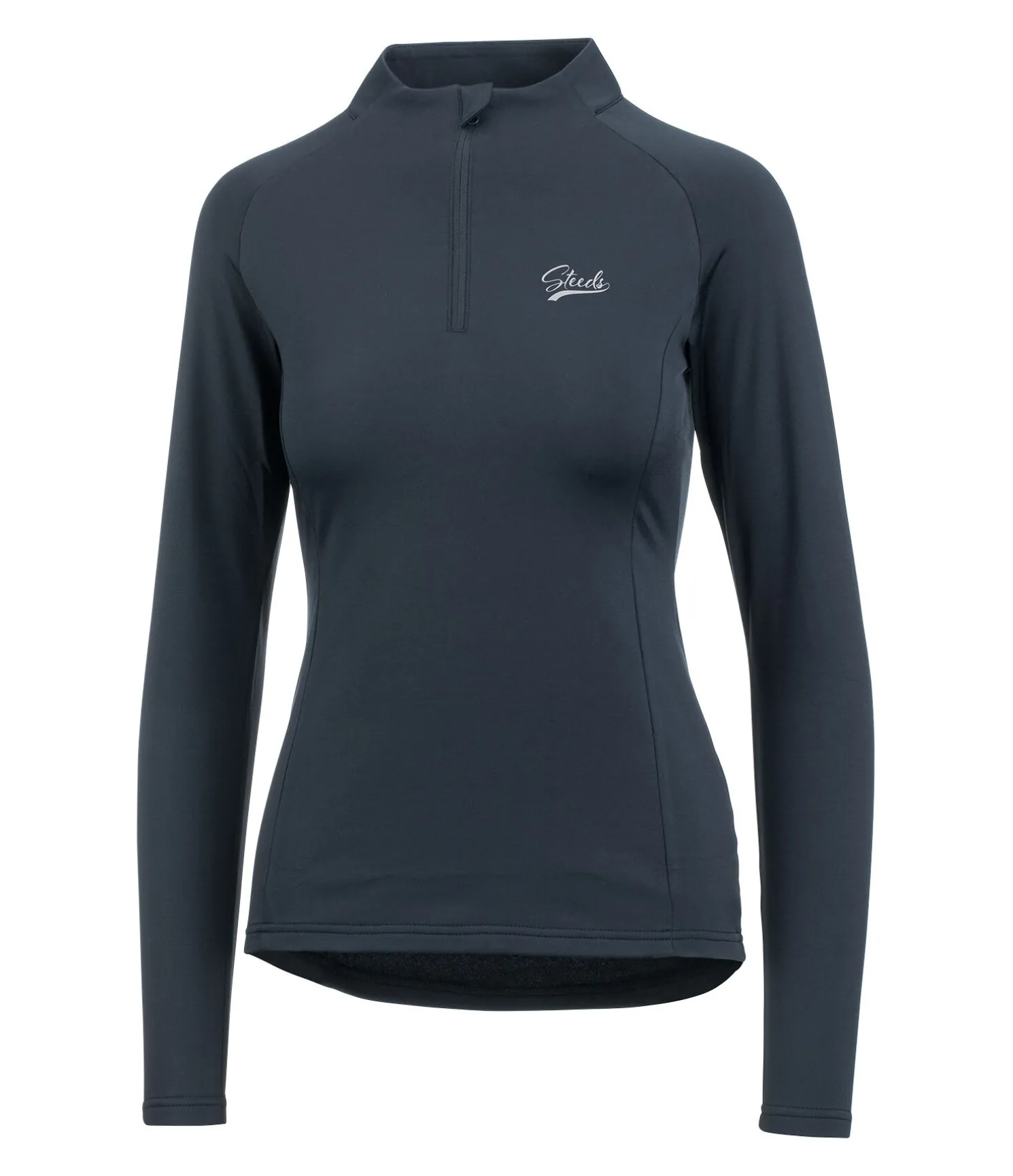 T-shirt technique à manches longues. Matière douce extensible et respirante. Séchage rapide. Col montant zippé avec protège-menton. Logo STEEDS sur la poitrine. Intérieur molletonné. 93 % polyester, 7 % élasthanne.