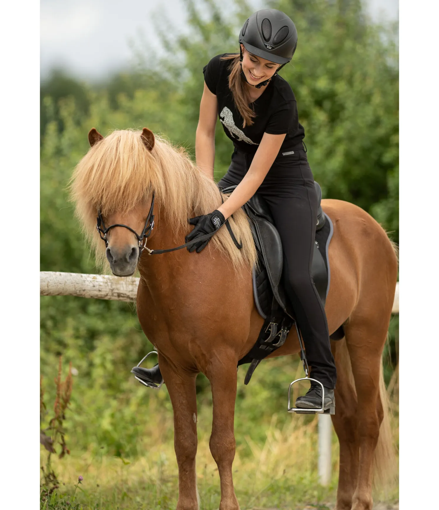 T-shirt doux avec motif islandais en strass scintillants sur la poitrine. 100 % coton.