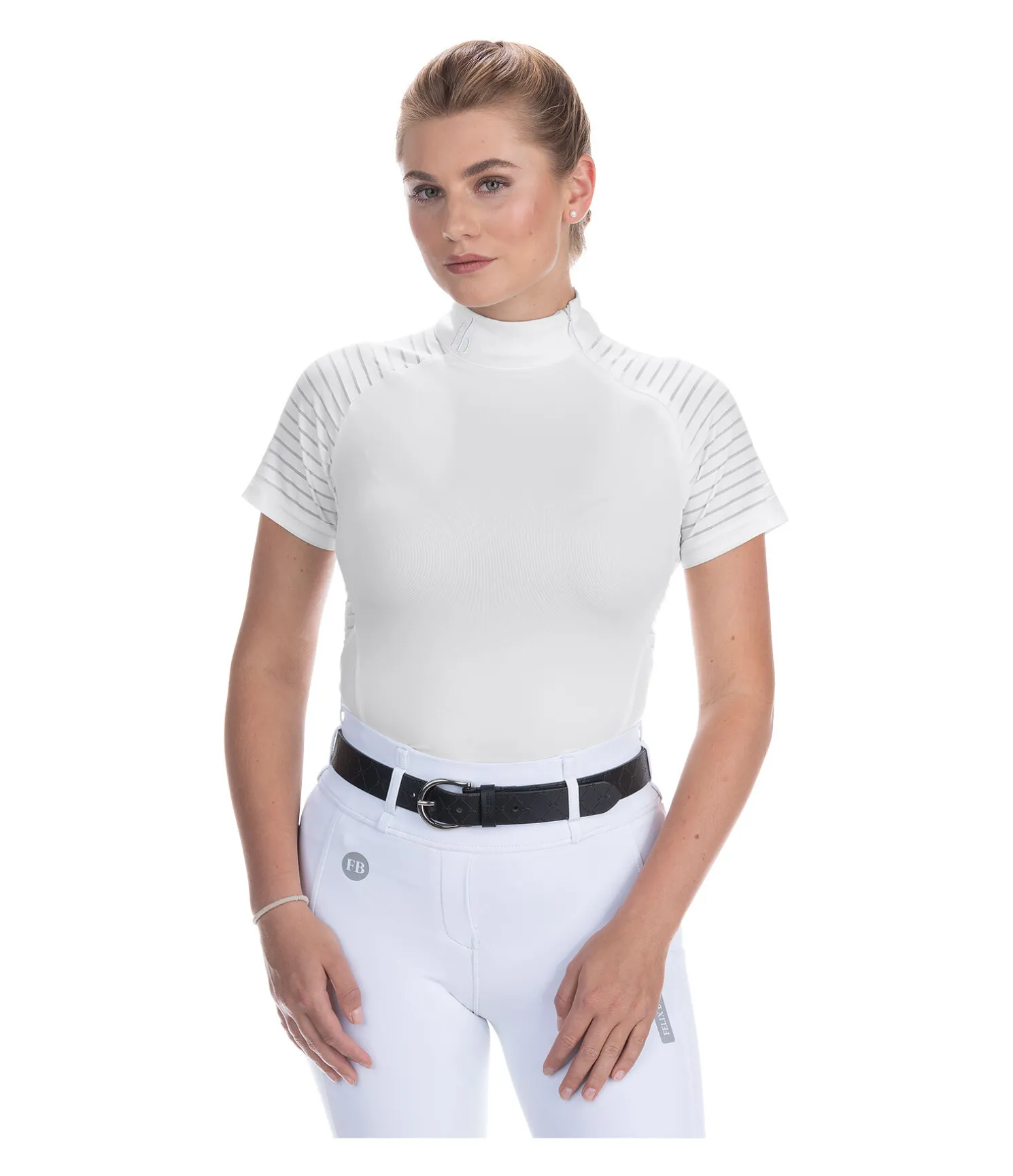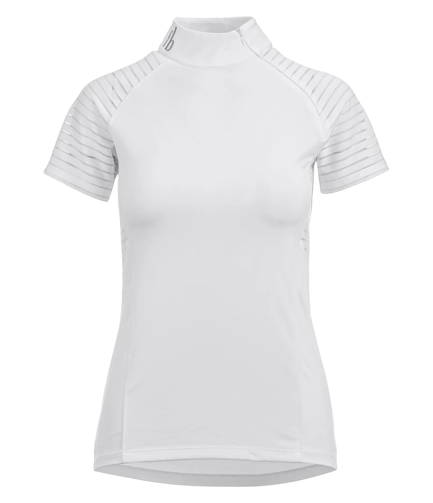 T-shirt de concours léger et technique. Sportswear. Matière respirante à séchage rapide. Empiècement en mesh rayé sur les manches raglan. Col officier blanc avec zip latéral et logo discret. 88 % polyester, 12 % élasthanne.