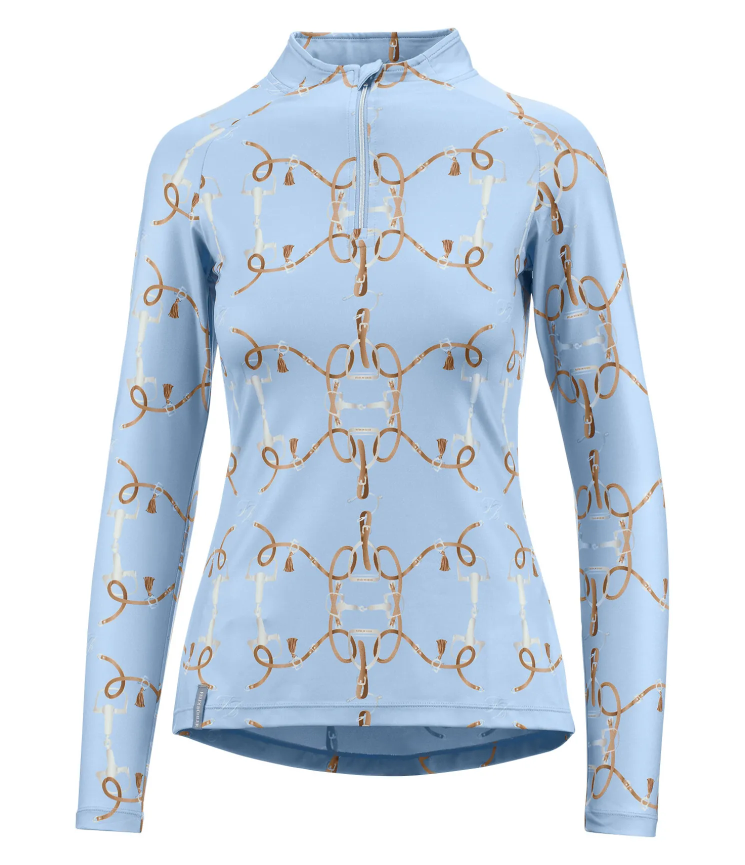 T-shirt fonctionnel à manches longues doux et extensible. Imprimé inspiration équestre all-over. Col montant zippé avec protège-menton. Matière respirante à séchage rapide. 88 % polyester, 12 % élasthanne.