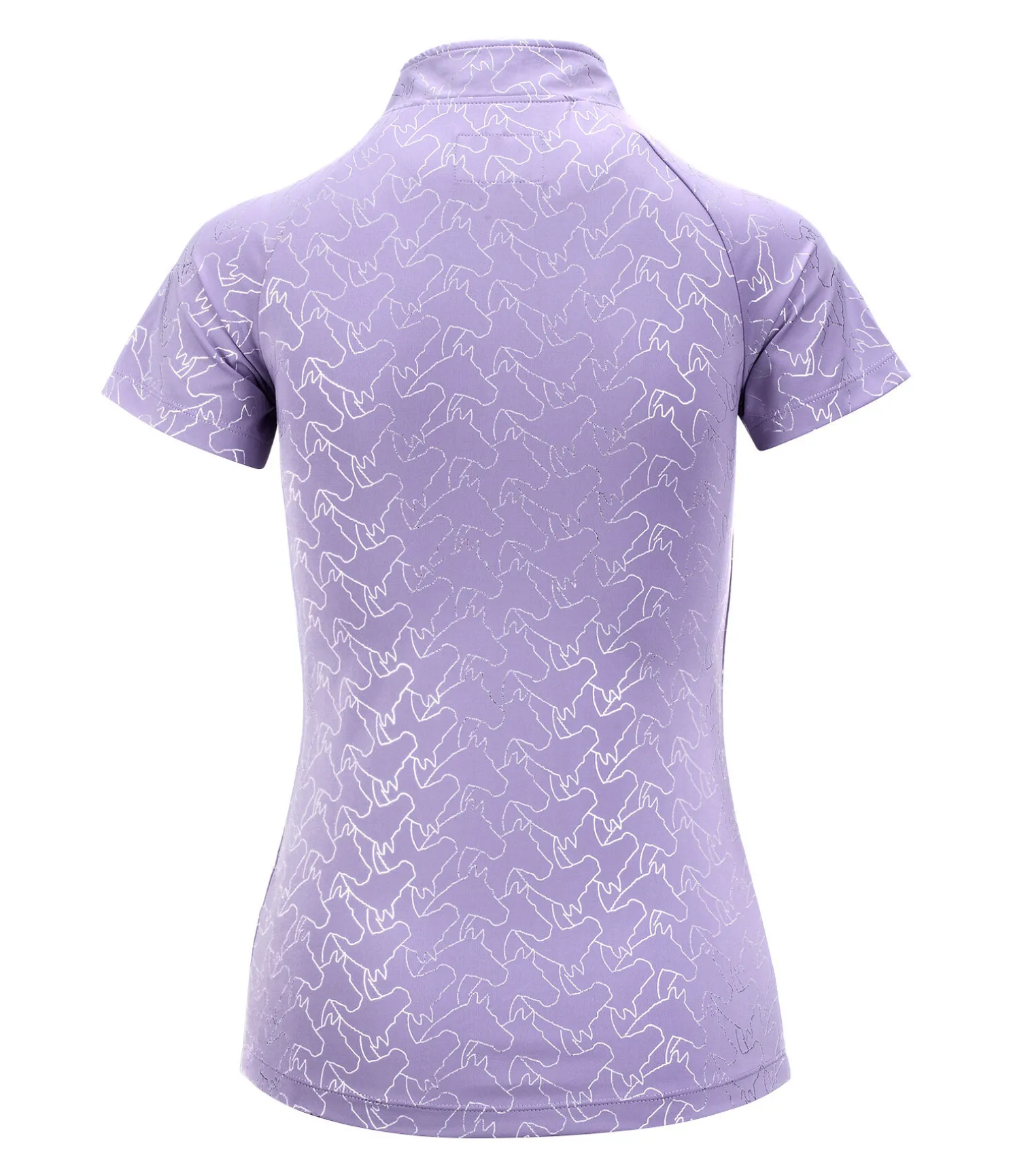 T-shirt chic et technique à manches courtes. Imprimé all-over métallisé motif tête de cheval. Manches raglan et petit col montant avec fermeture à glissière et protège-menton. Respirant et à séchage rapide. 88 % polyester, 12 % élasthanne.