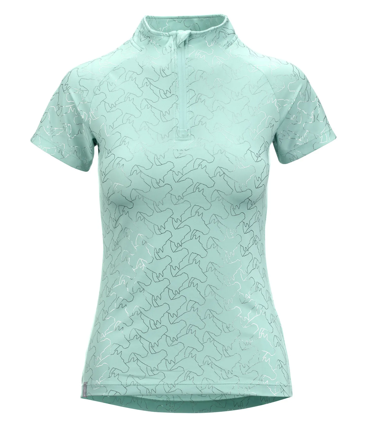 T-shirt chic et technique à manches courtes. Imprimé all-over métallisé motif tête de cheval. Manches raglan et petit col montant avec fermeture à glissière et protège-menton. Respirant et à séchage rapide. 88 % polyester, 12 % élasthanne.
