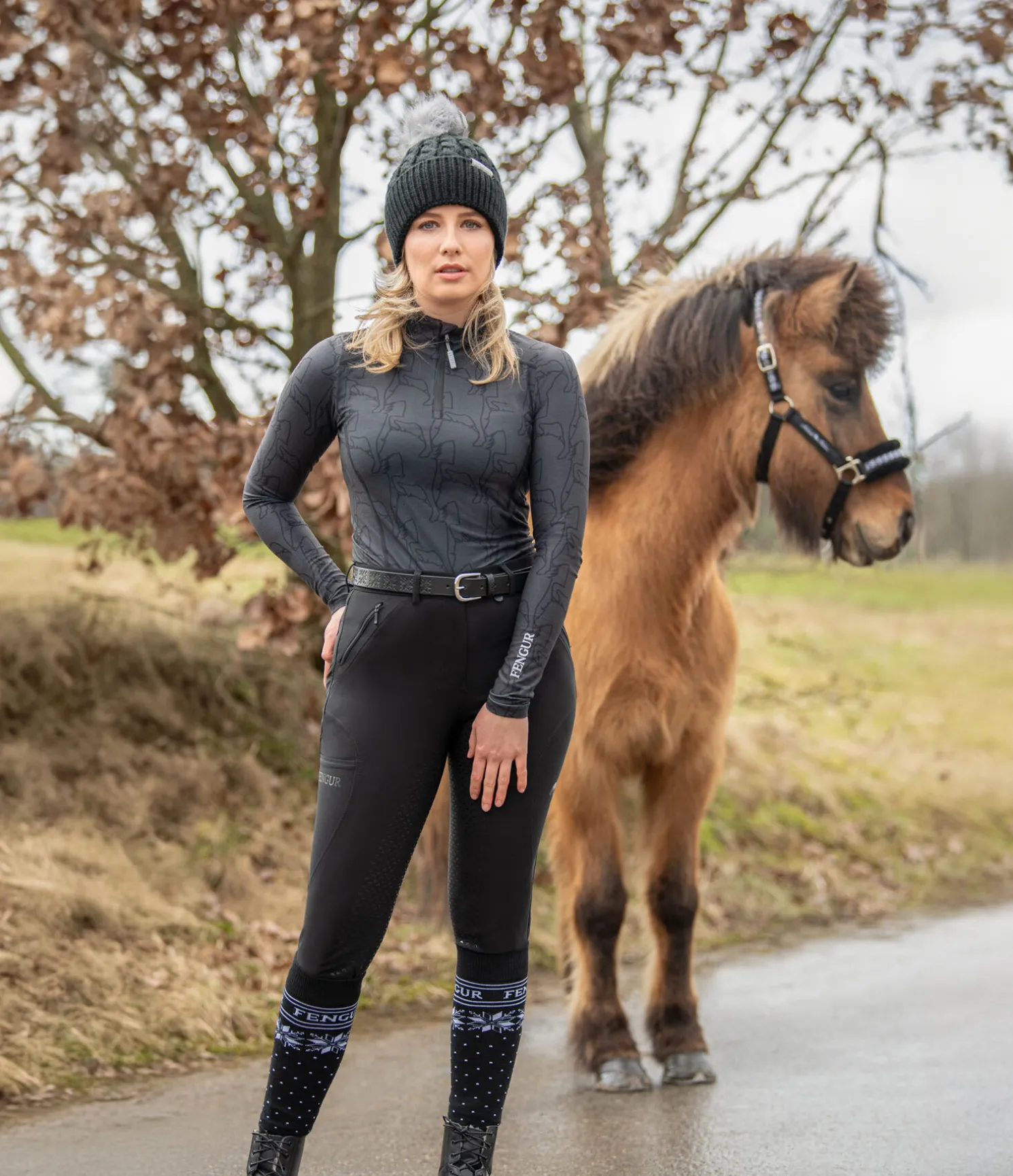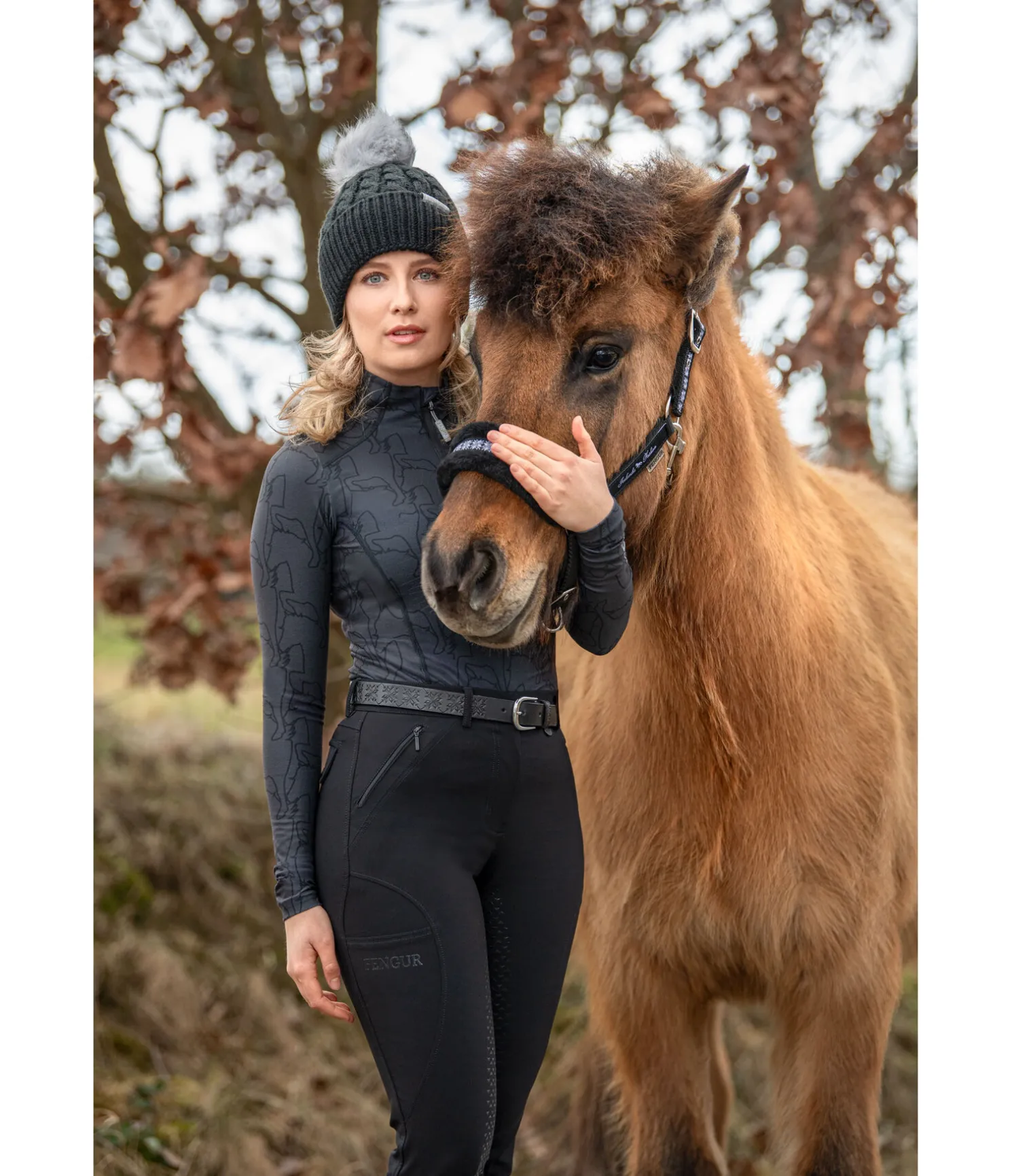 Joli T-shirt technique à manches longues, doux et extensible. Col montant zippé avec protège-menton. Matière respirante. Séchage rapide. Motif all-over tête de cheval. 88 % polyester, 12 % élasthanne.