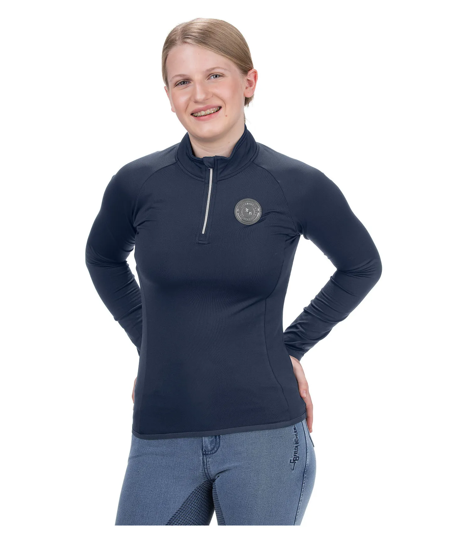 Élégant T-shirt respirant à col montant pour enfant avec badge logo Felix Bühler sophistiqué sur la poitrine. La matière est molletonnée à l’intérieur et ainsi très douillette. Fermeture à glissière rose-doré avec protège-menton. Bas des manches et taille élastiqués. À séchage rapide. 93 % polyester, 7 % élasthanne.