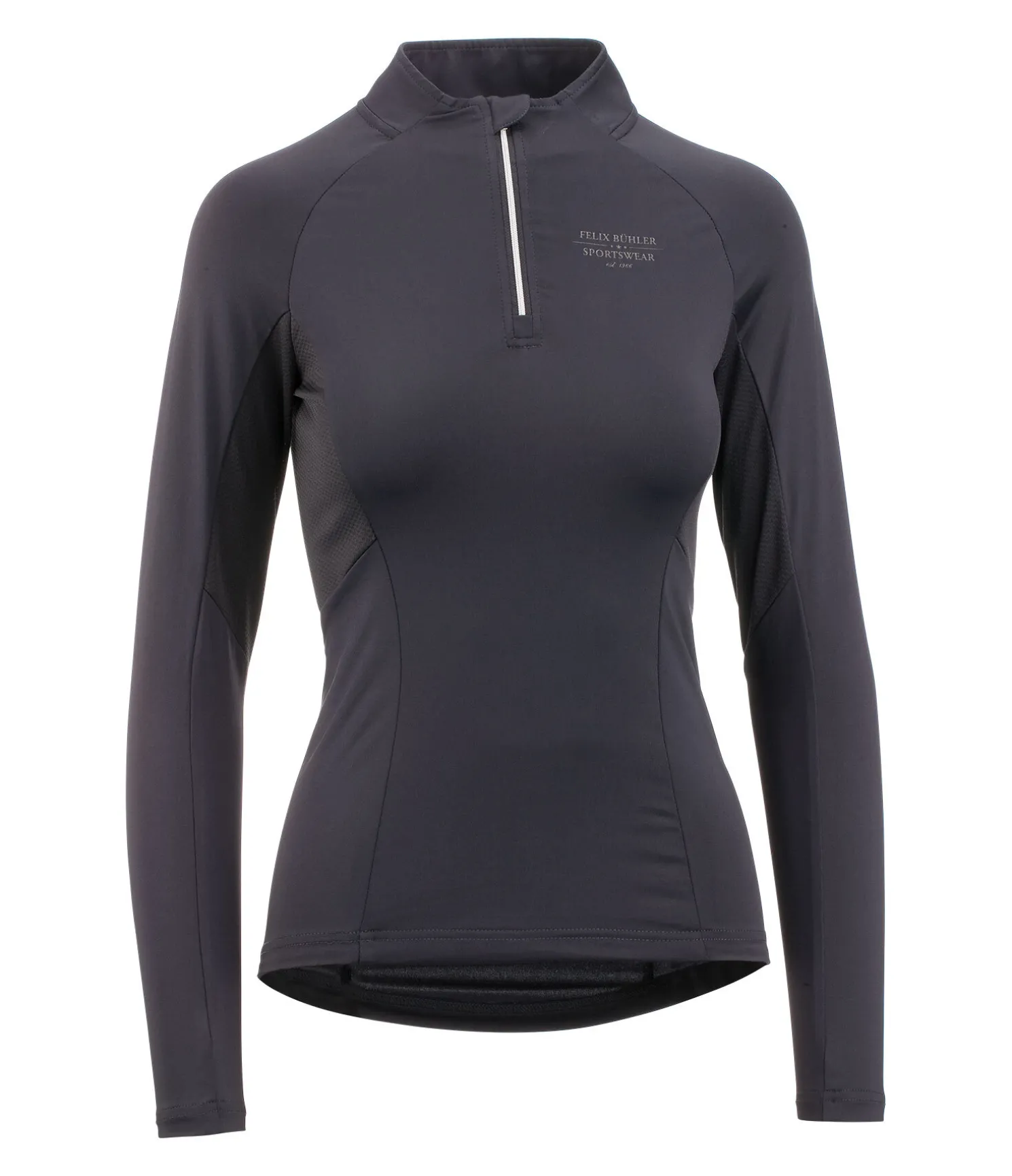 T-shirt à manches longues extensible et doux. Col montant zippé. Empiècements en mesh pour une respirabilité optimale. Manches raglan. Matière à séchage rapide. 88 % polyester, 12 % élasthanne.
