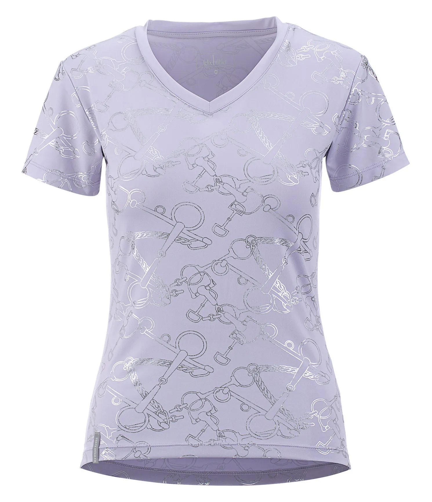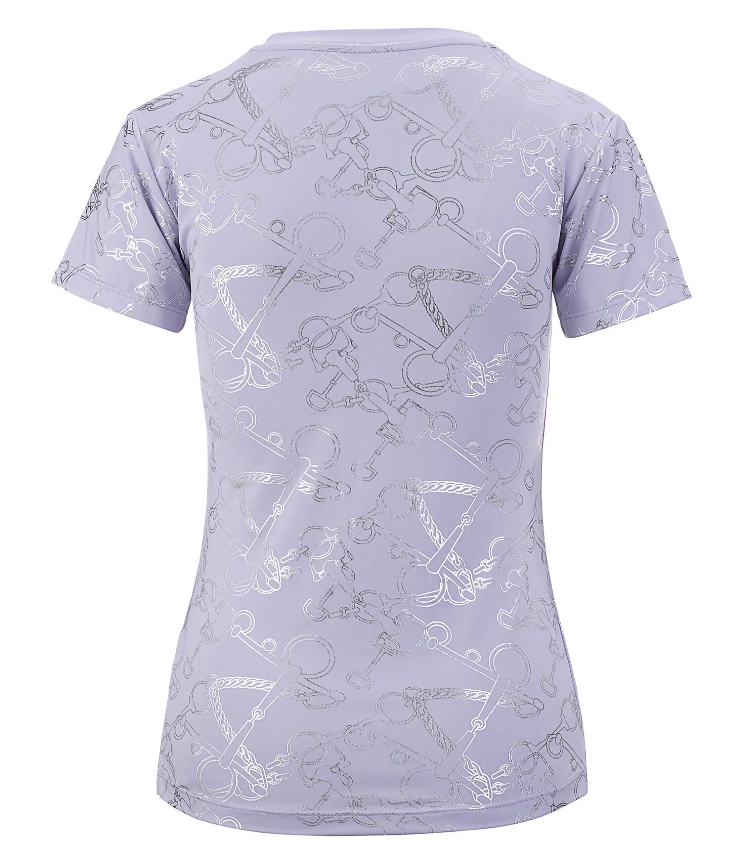 Élégant T-shirt technique à manches courtes. Col en V. Imprimé all-over couleur métallisée. Respirant et à séchage rapide. 88 % polyester, 12 % élasthanne
