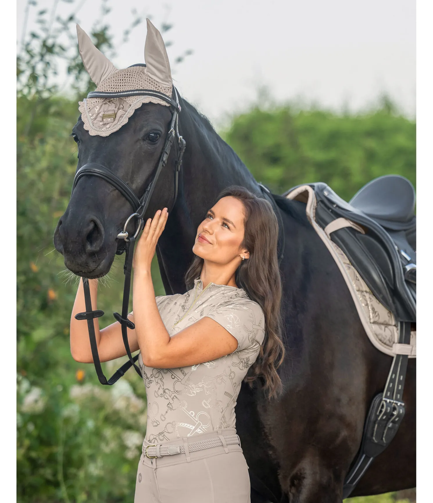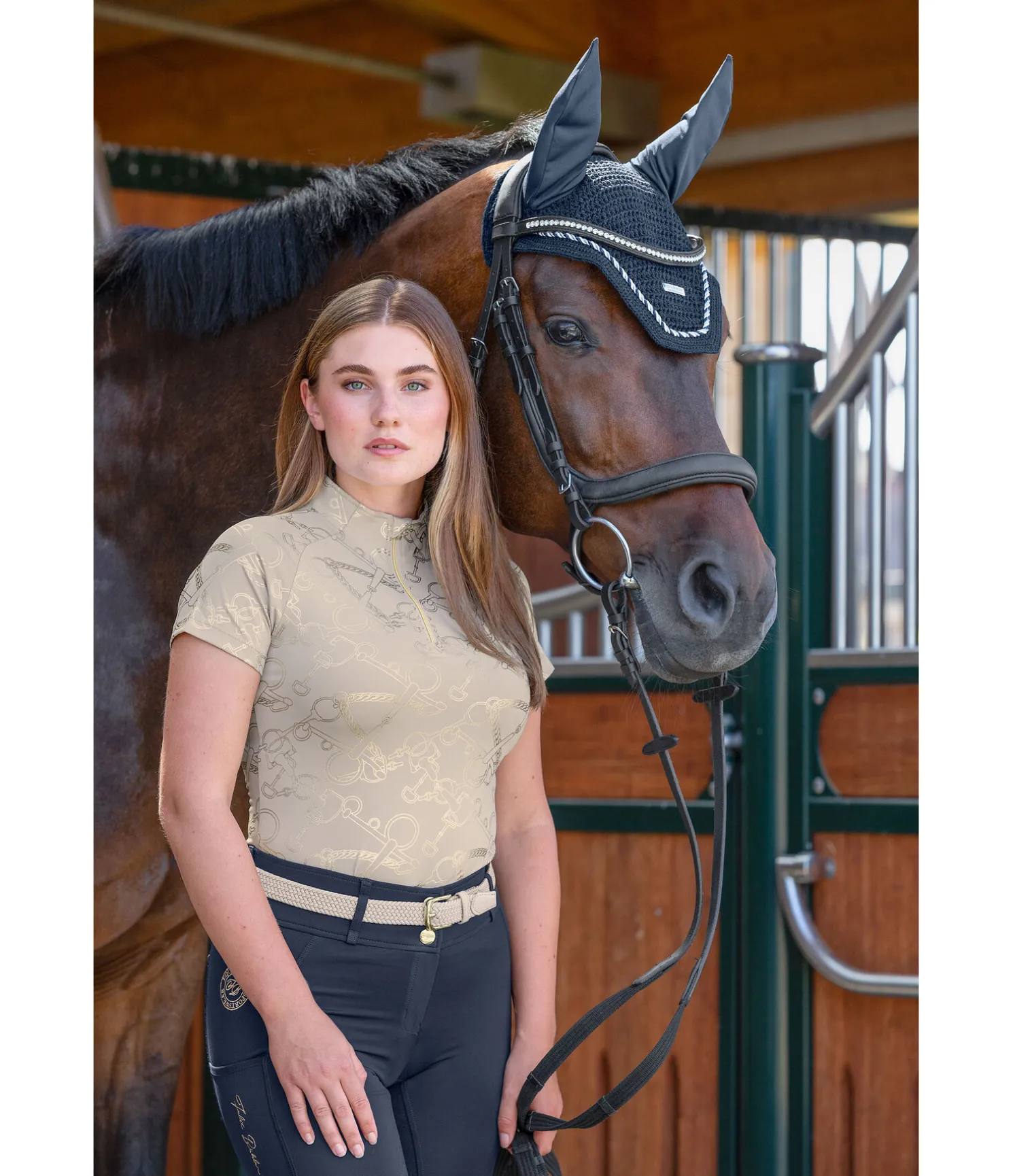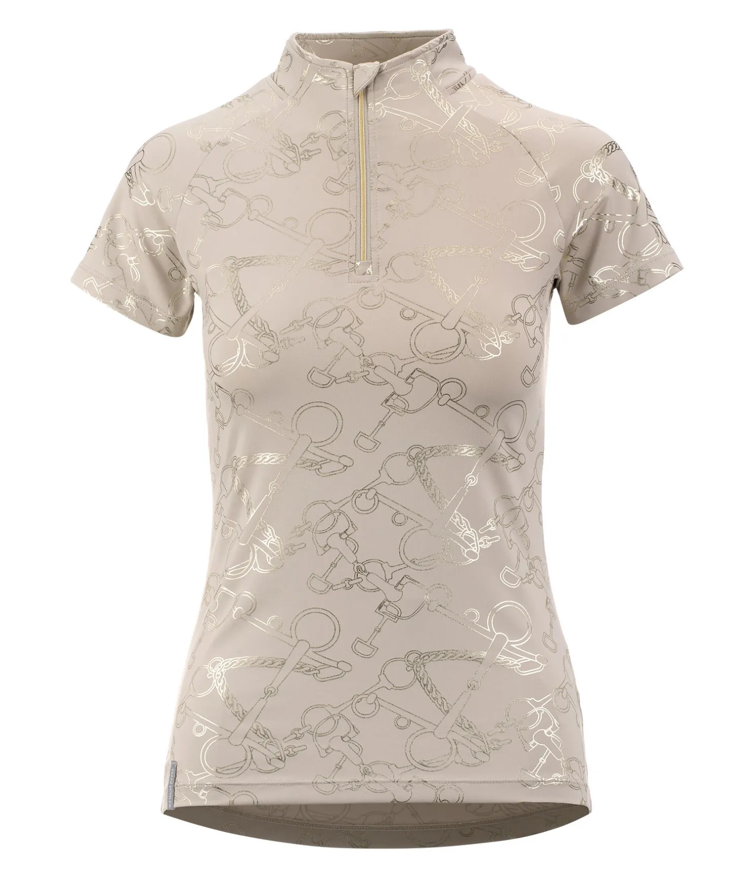 T-shirt technique sportswear et élégant avec imprimé all-over métallisé. Manches raglan et col montant zippé avec protège-menton. Respirant et à séchage rapide. 88 % polyester, 12 % élasthanne.