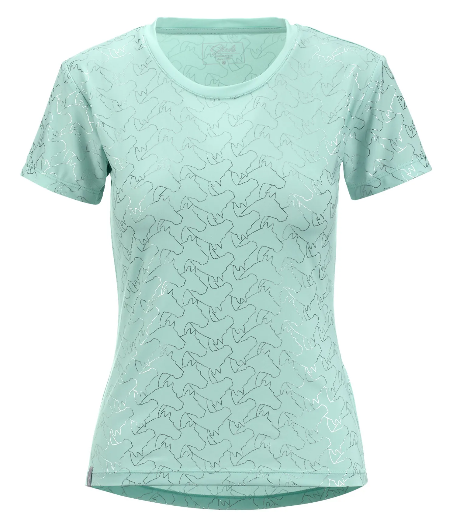 T-shirt chic à col rond avec imprimé all-over métallisé motif tête de cheval. Tissu technique respirant et à séchage rapide. 88 % polyester, 12 % élasthanne.