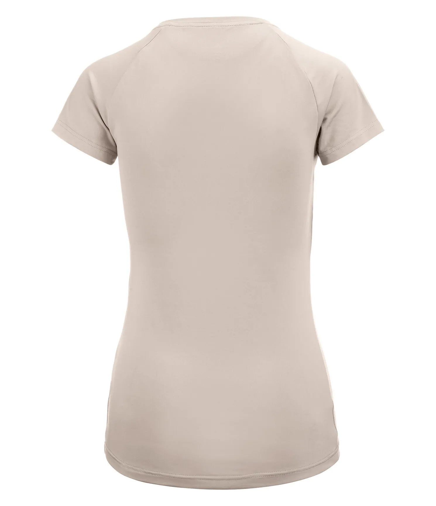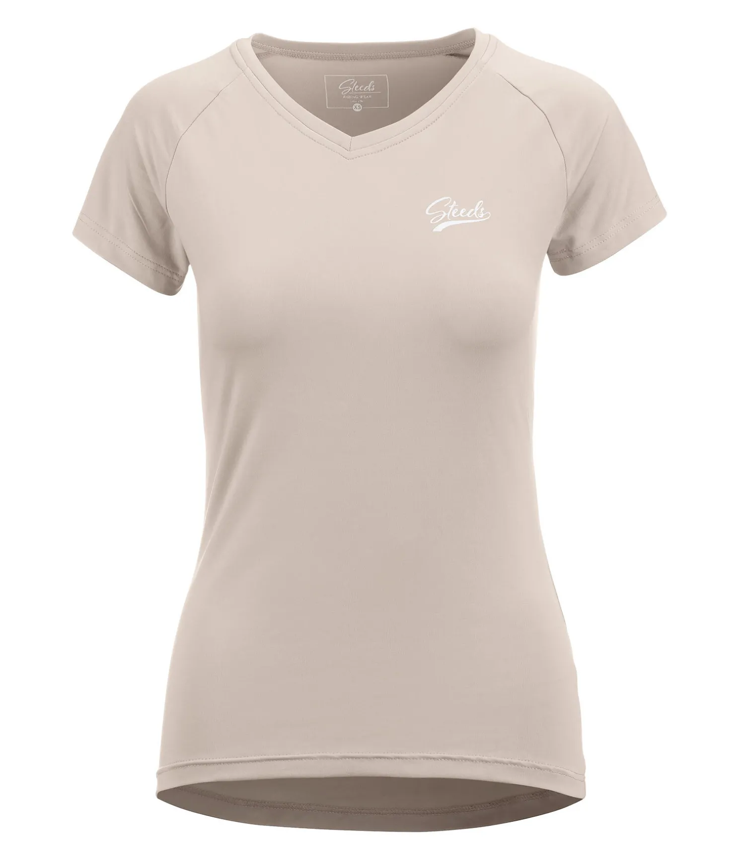 T-shirt col en V à manches courtes. Doux et extensible. Matière respirante à séchage rapide. Imprimé argenté sur la poitrine. 88 % polyester, 12 % élasthanne.