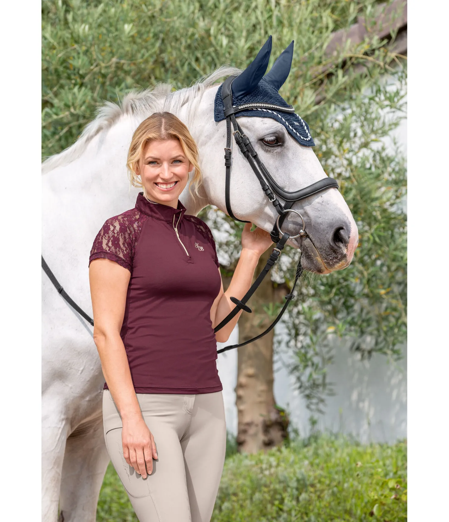 Chic T-shirt technique à manches courtes. Tissu technique très extensible, respirant et à séchage rapide. Manches raglan et haut du dos en dentelle élégante et aérée. Col montant zippé avec protège-menton. 88 % polyester, 12 % élasthanne.
