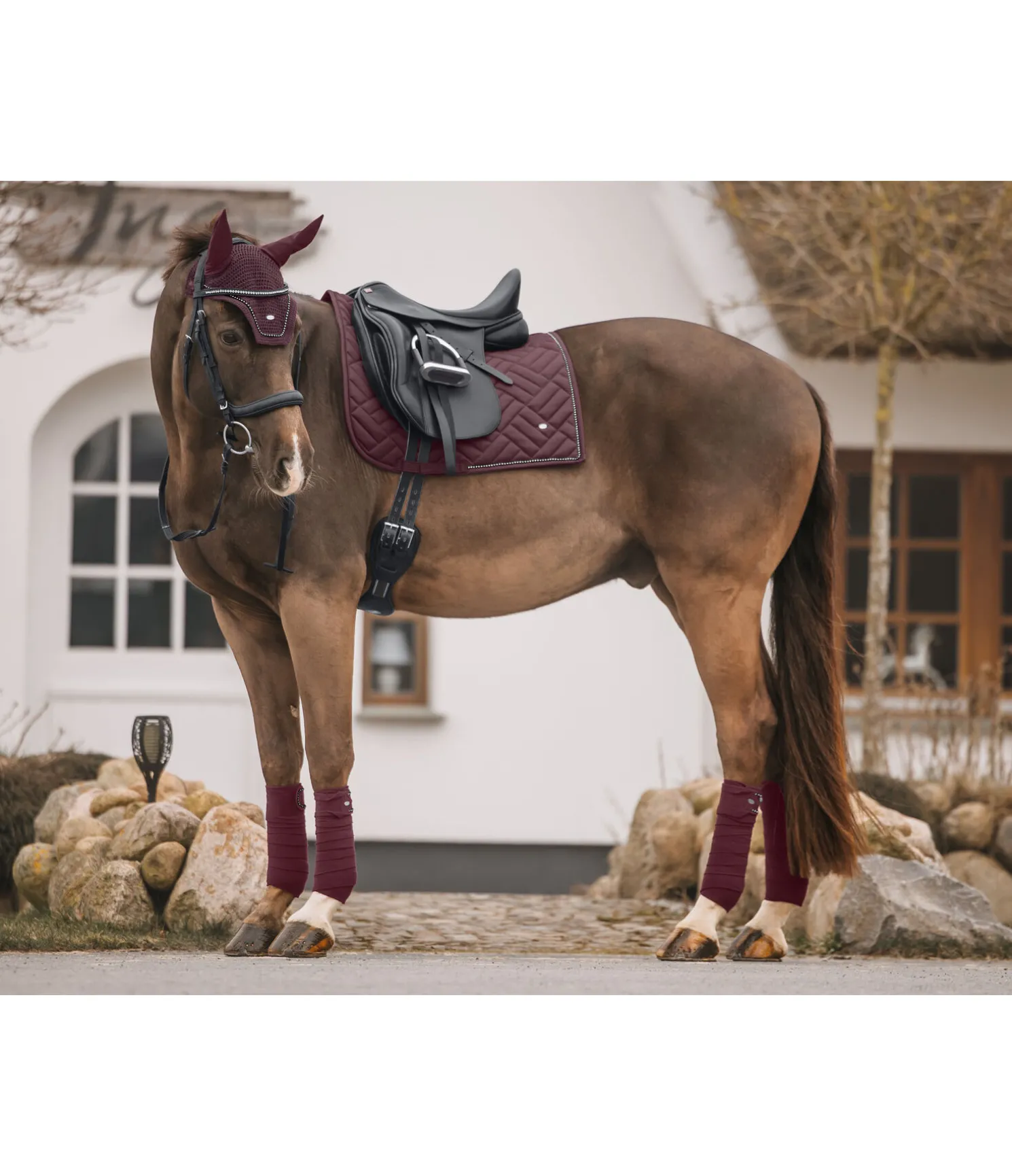 Tapis de selle de forme carrée, particulièrement élégant, avec surpiqûres apparentes. Passepoil avec strass. Petit médaillon discret avec logo gravé. Passants de sangle et de contre-sanglons avec patte auto-agrippante fonctionnelle. Dessous Air mesh respirant et absorbant l’humidité. 100 % polyester.