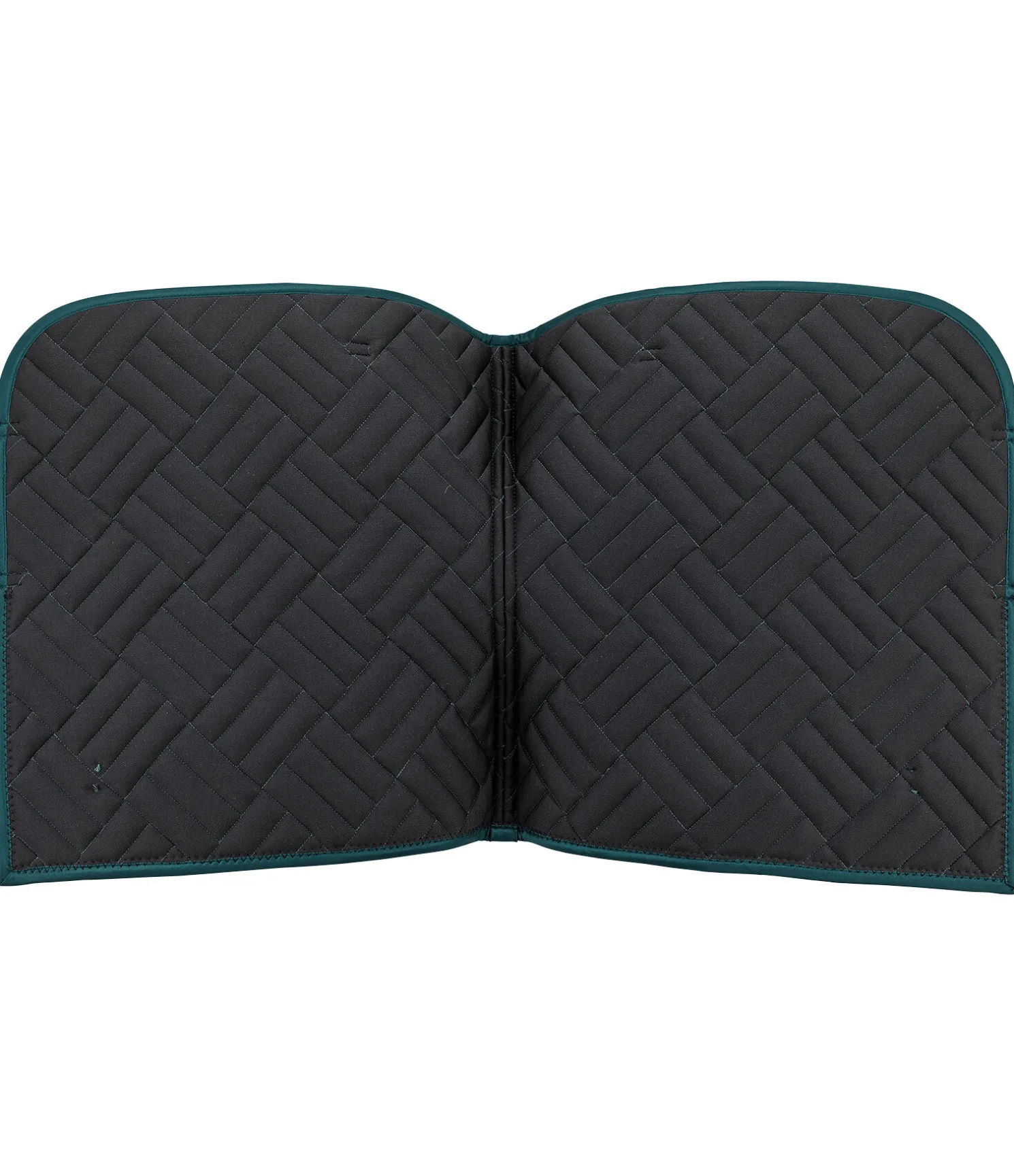 Tapis de selle de forme carrée, particulièrement élégant, avec surpiqûres apparentes. Passepoil avec strass. Petit médaillon discret avec logo gravé. Passants de sangle et de contre-sanglons avec patte auto-agrippante fonctionnelle. Dessous Air mesh respirant et absorbant l’humidité. 100 % polyester.