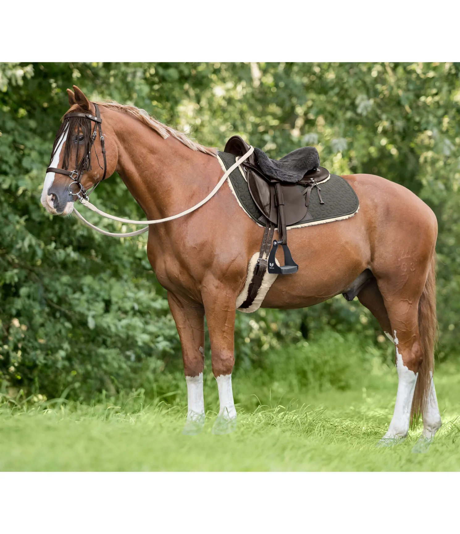 Tapis de selle de randonnée en matière respirante et respectueuse de la robe. Dessous en laine de mouton australienne. La laine est moins épaisse le long de la ligne du dos afin d’assurer une liberté optimale de la colonne vertébrale. Le tapis de selle est long pour permettre de fixer des sacoches derrière la selle. Grâce à sa forme anatomique, il convient également aux chevaux ayant un garrot plus saillant. Sans passant de sangle ou contre-sanglons gênants. Rembourage en synthétique au niveau du passage de sangle. Dessus en coton respirant à séchage rapide. Convient aux selles d´endurance ou western. Longueur du dos 84 cm, hauteur 50 cm. Épaisseur 3 cm.