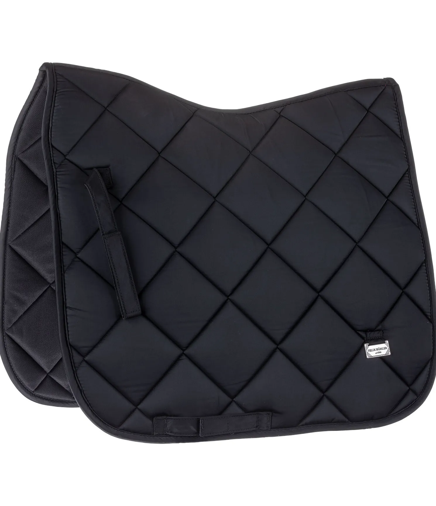 Tapis de selle épuré et brillant en tissu satiné avec une élégante surpiqûre en losange. Orné de chaque côté d’une petite plaque métallique avec logo. Passants de sangle et de contre-sanglons avec patte auto-agrippante pratique. Dessous en Air mesh respirant et absorbant l’humidité. 100 % polyester.