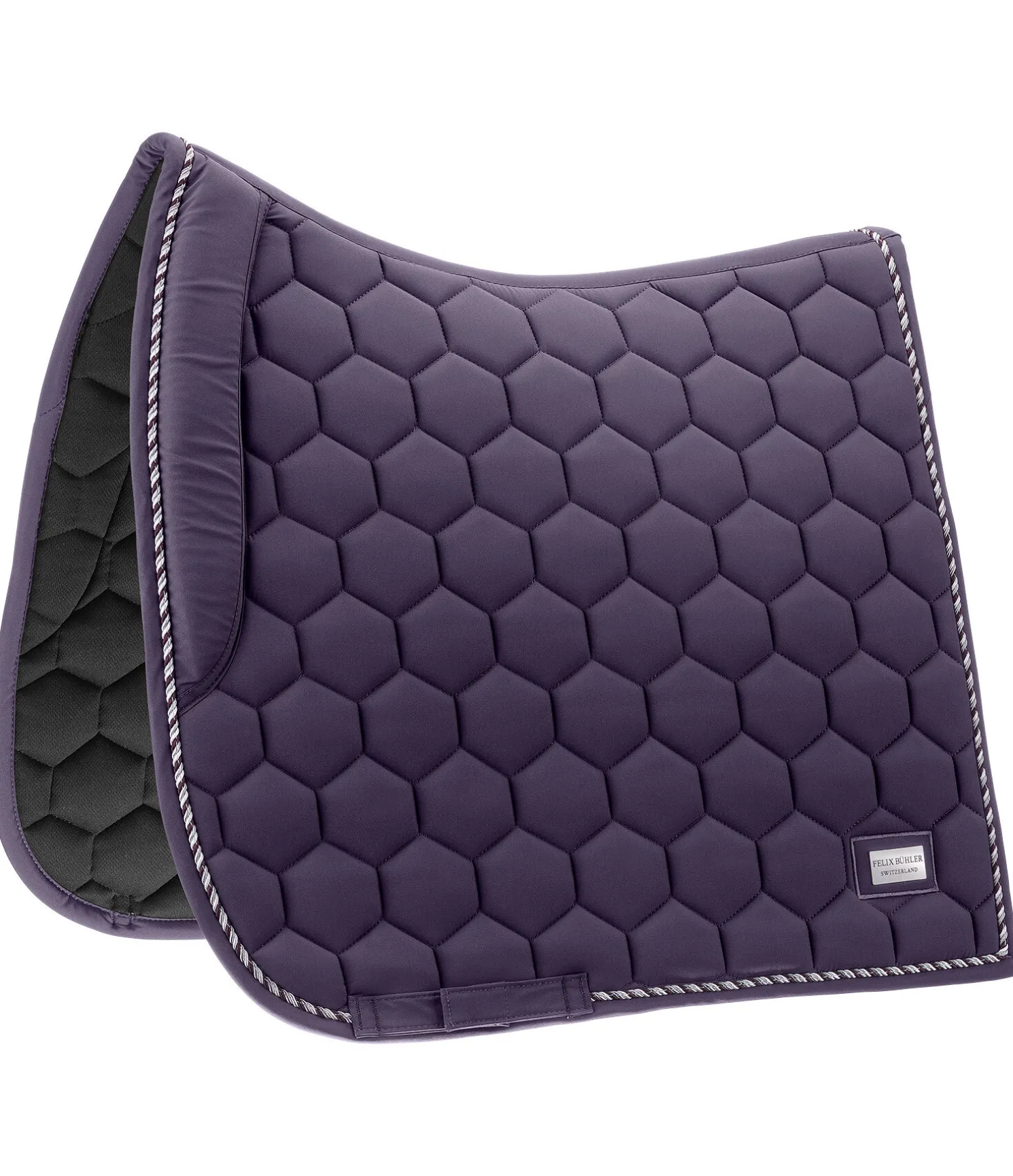 Tapis de selle avec rembourrage à l’avant permettant de garder la selle en place sans passants de contre-sanglons. Coupe sportive avec angle droit et surpiqûre en losanges. Dessus en matière lisse anti-salissures, cordon décoratif de couleur assortie et plaque logo métallique classique. Passants de sangle avec patte auto-agrippante pratique. Dessous en Air mesh respirant et absorbant l’humidité. 100 % polyester.