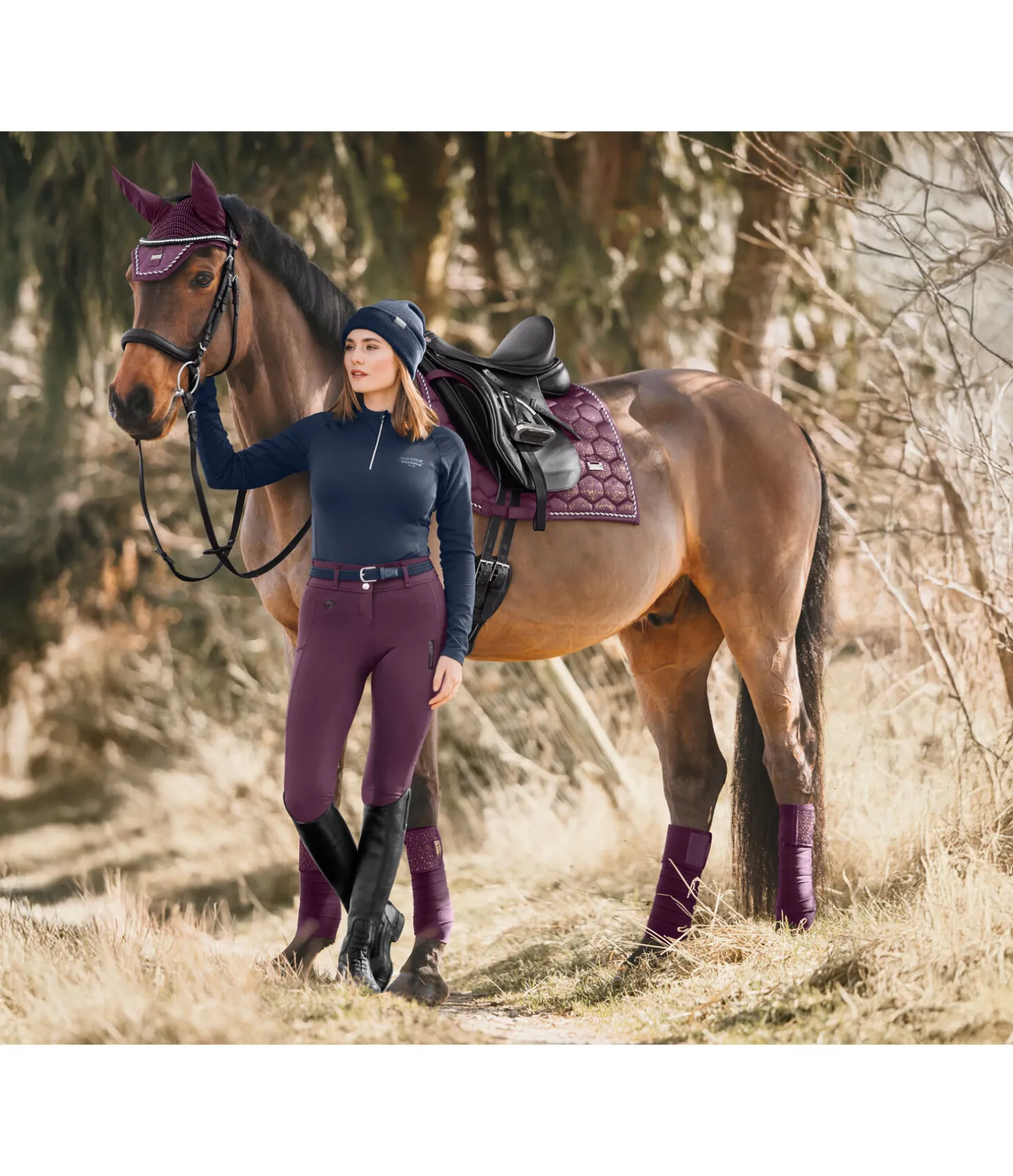 Tapis de selle de forme carrée. Satiné et orné de fragments scintillants, d’un triple cordon décoratif et d’une petite plaque métallique avec logo gravé. Plaque argentée en S, dorée en CO et rose-doré en NV. Passants de sangle et de contre-sanglons avec patte auto-agrippante pratique. Dessous en Air mesh respirant et absorbant l’humidité. 100 % polyester.