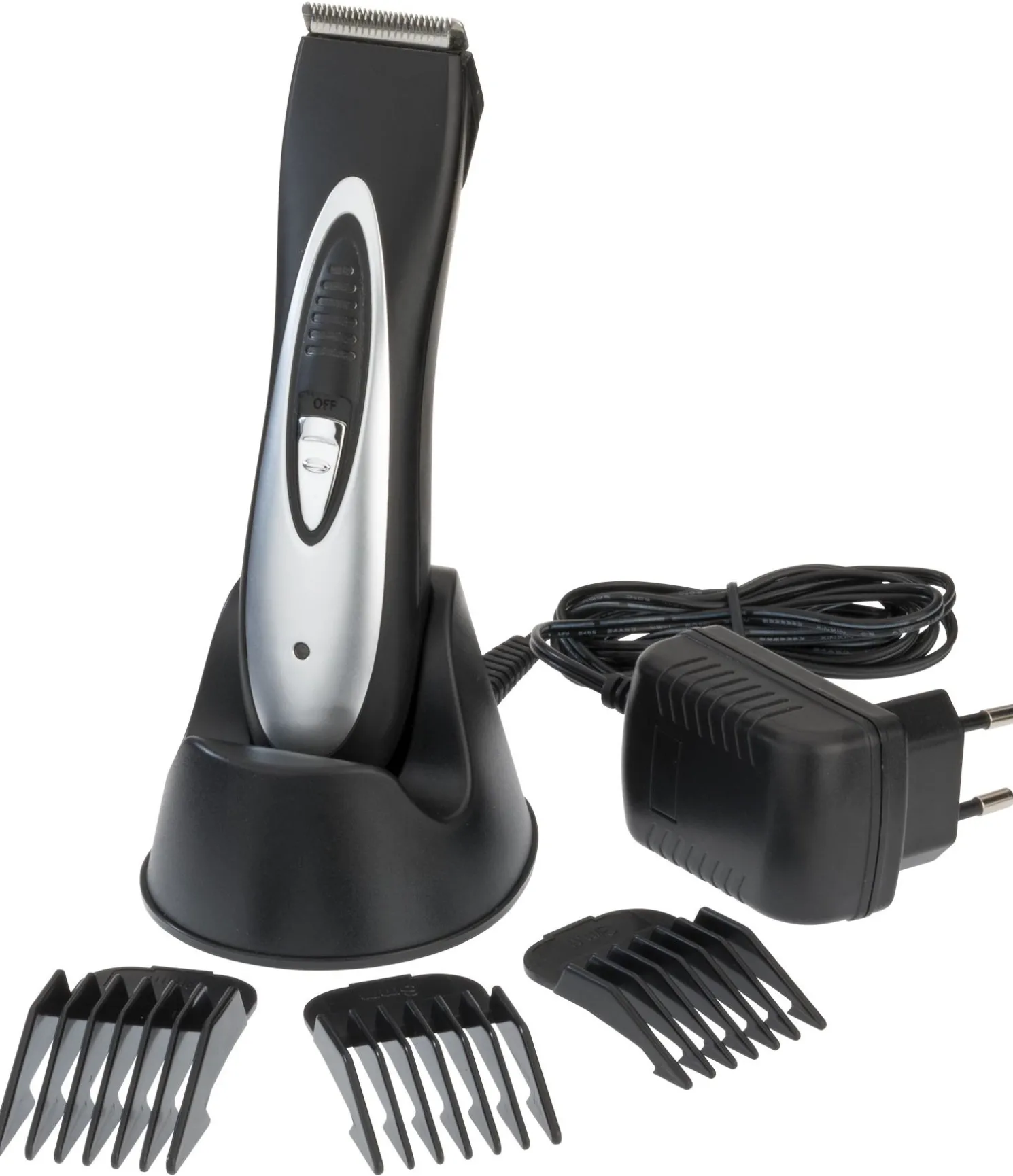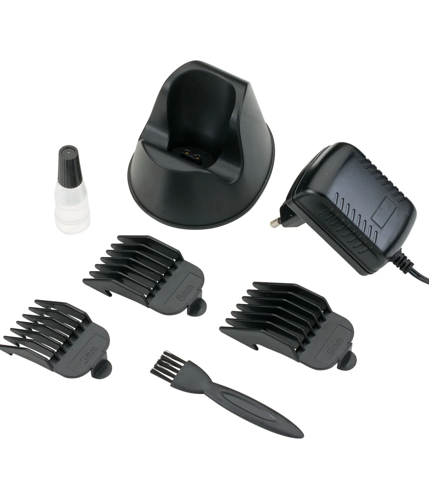 Petite tondeuse qui fonctionne sur batterie, idéale pour la tête et les finitions. Avec tête de rasage de largeur 32 mm. Très silencieuse et facile à prendre en main. 3 sabots amovibles pour des tontes de 3, 6 et 9 mm. Support de charge pratique