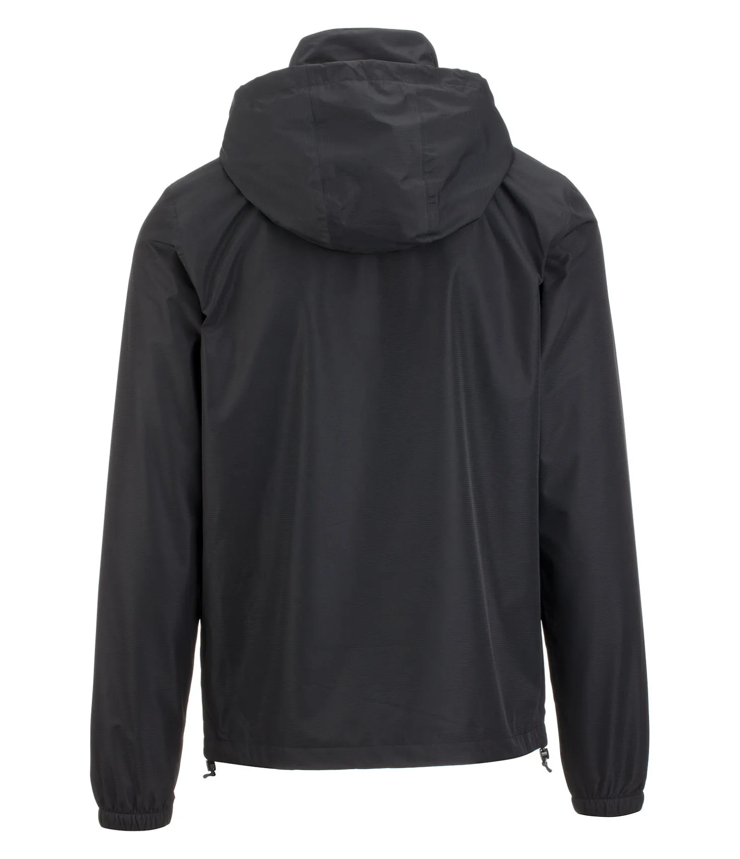Veste de pluie légère pour homme alliant simplicité et technicité. Imperméable (5.000 mm), coupe-vent et respirante. La capuche se range dans le col. Poignets élastiqués. Cordon de réglage à la taille. Fermeture à glissière double sens dissimulée. 2 poches latérales zippées. 100 % nylon.