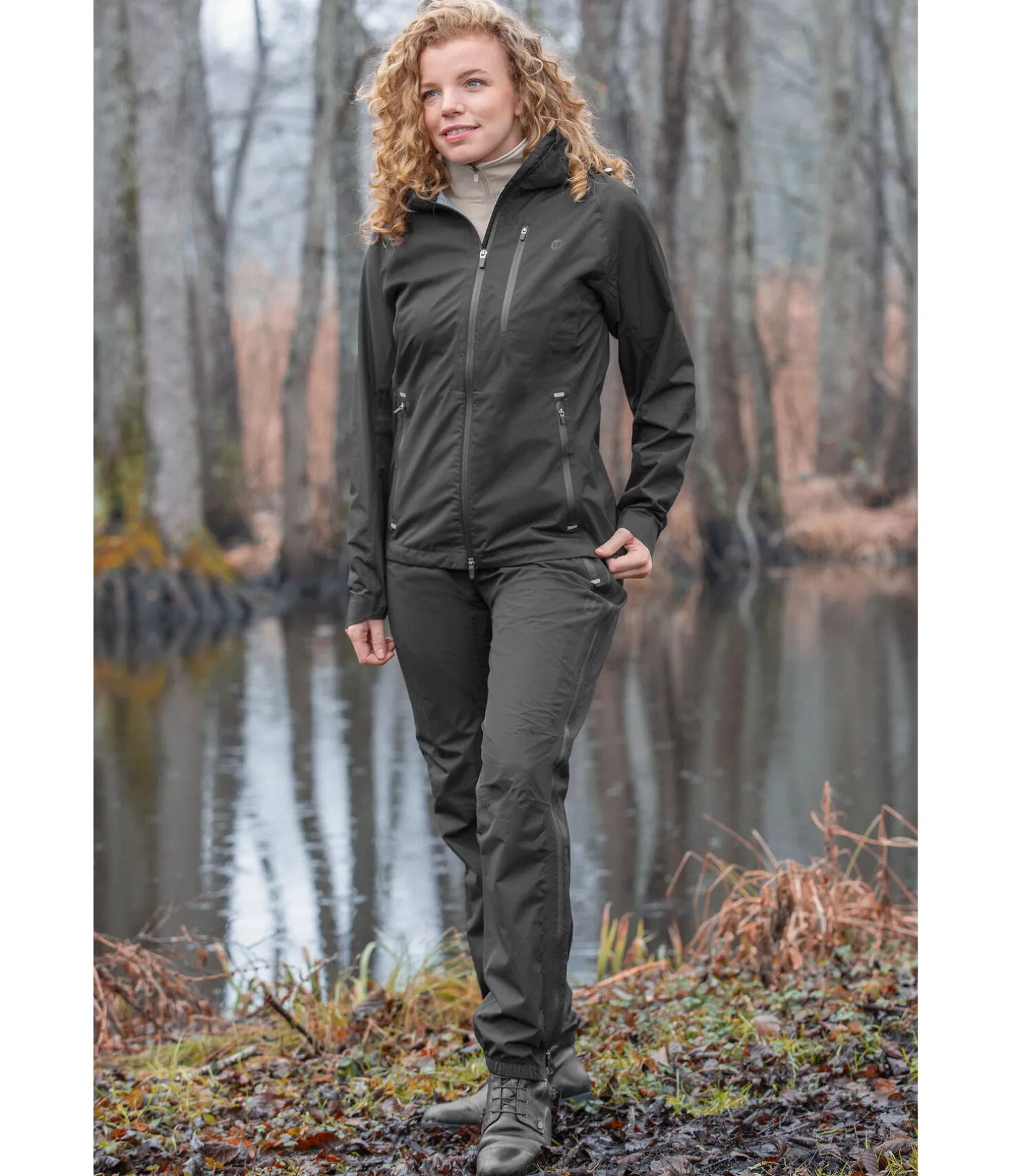 Veste d’équitation technique et légère idéale. Imperméabilité maximale 20.000 mm avec coutures thermosoudées. Haute respirabilité (10.000 MVP) et coupe-vent. Les fermetures à glissière étanches sous les bras assurent une ventilation parfaite. Capuche ajustable à fixer dans le dos par bouton-pression. Fermeture à glissière double sens étanche avec sous-patte et protège-menton. 2 poches zippées imperméable à l’avant et 1 poche zippée imperméable sur la poitrine. 100 % polyester.