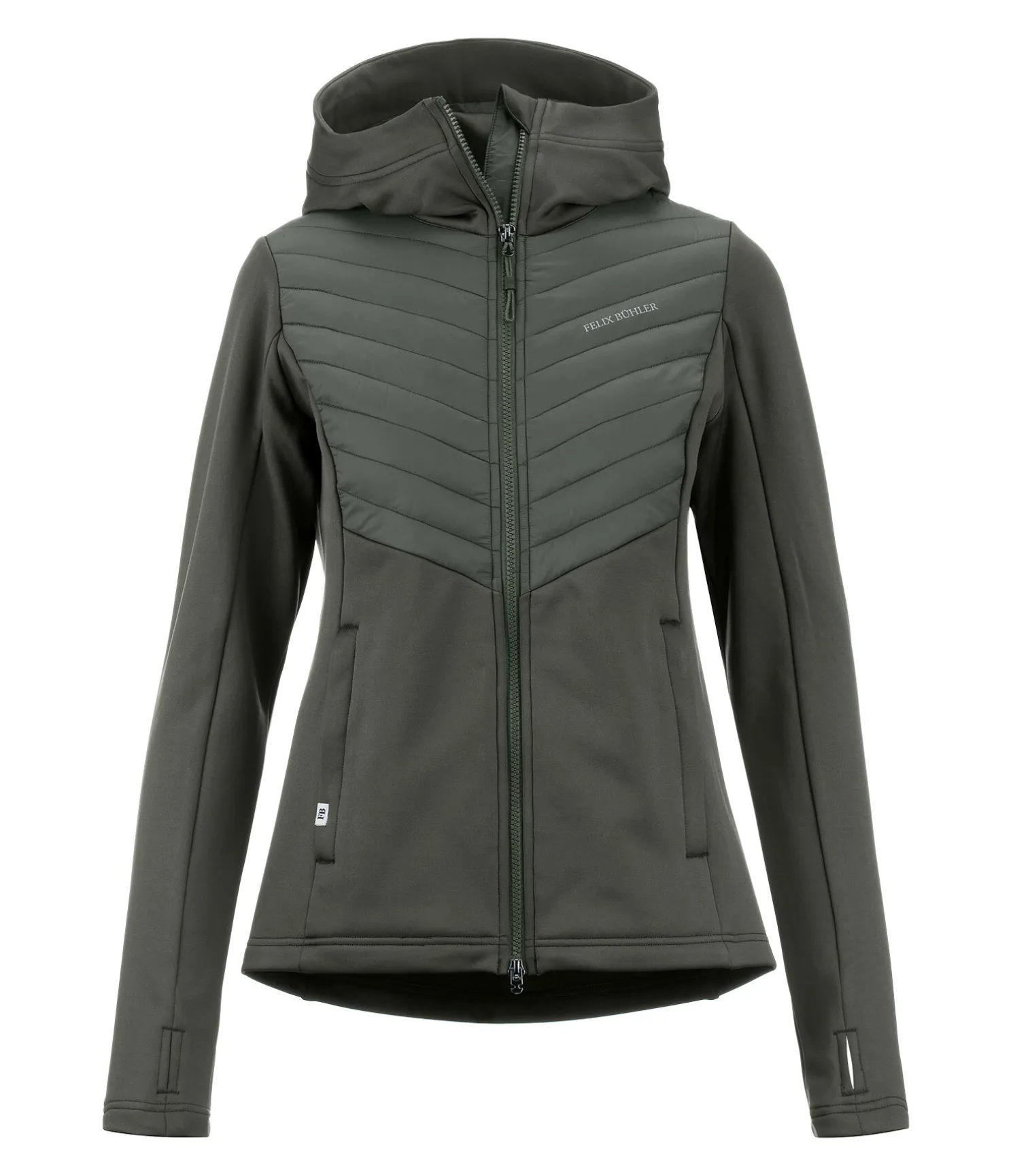 Combinaison technique en matière légèrement rembourrée sur le torse et le haut du dos, et en stretch Performance chaud assurant une liberté de mouvement optimale et un ajustement parfait. Fermeture à glissière double sens avec sous-patte et protège-menton, 2 poches zippées devant, passe-pouce. Imprimé Felix Bühler. Tissu torse et haut du dos 100 % polyester ; tissu stretch 95 % polyester, 5 % élasthanne.