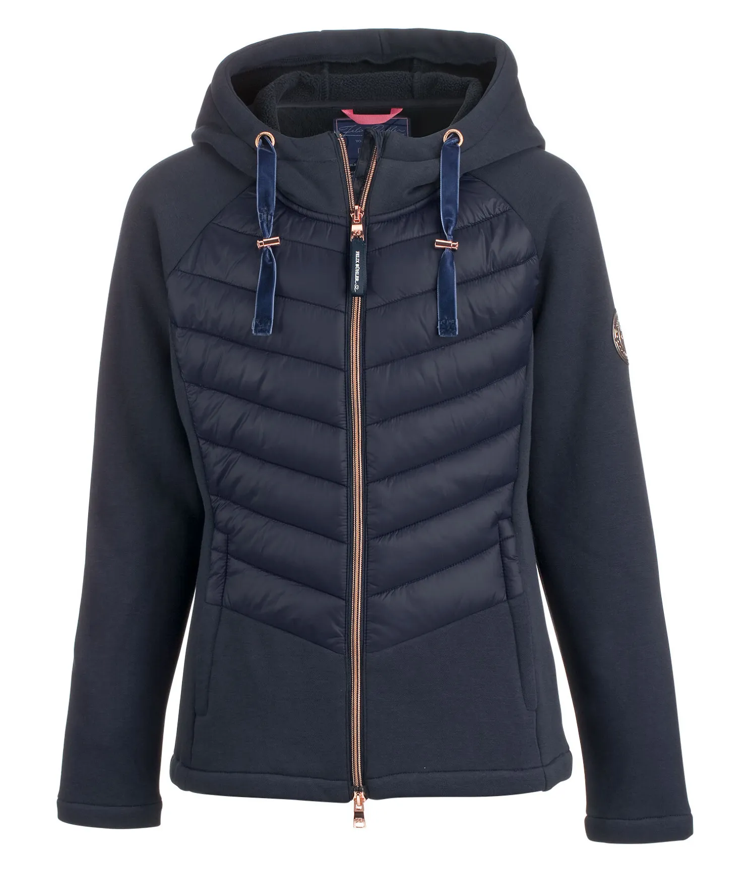Veste d’équitation bi-matière. Coton mélangé stretch respirant, déperlant et coupe-vent au niveau des manches, du dos et sur les côtés. Nylon matelassé rembourré à l’avant. Intérieur molletonné. Col montant. Capuche ajustable. Bouton-pression pour fixer la capuche dans le dos. Imprimé Felix Bühler sur la manche. Deux poches latérales zippées. Fermeture à glissière à double sens rose doré avec sous-patte et protège-menton. Bas des manches et taille élastiqués. Extérieur 64 % polyester, 36 % coton. Insert matelassé 100 % nylon.