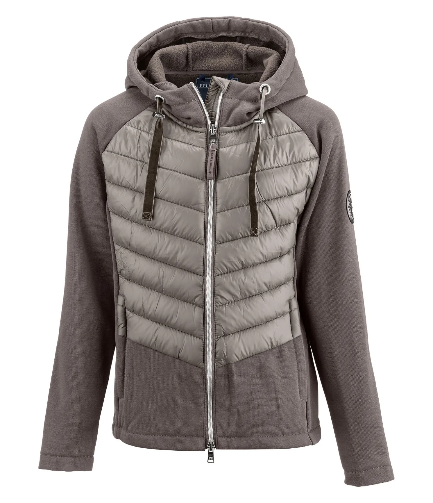 Veste d’équitation tendance pour enfant dans une combinaison parfaite de coton mélangé stretch doux et de nylon naturellement brillant, matelassé et rembourré. Le coton mélangé stretch sur les côtés, les manches et le dos est respirant et molletonné à l’intérieur. Col haut avec capuche réglable pouvant être fixée dans le dos. Badge Felix Bühler chic sur la manche, 2 poches zippées devant et fermeture à glissière double sens avec sous-patte et protège-menton. Bas des manches et taille élastiqués. Matière principale : 64 % polyester, 36 % coton. Inserts matelassés 100 % nylon.