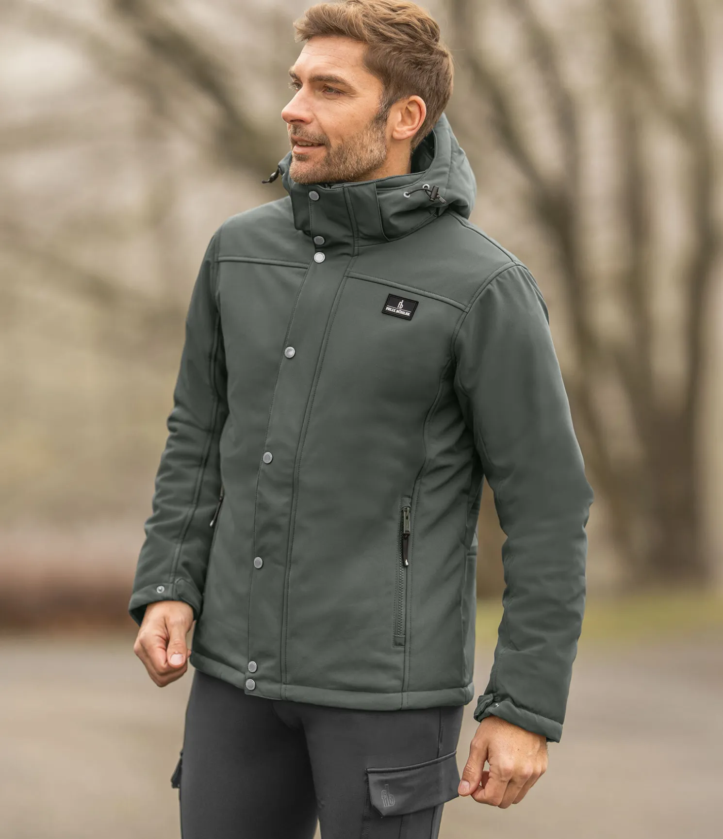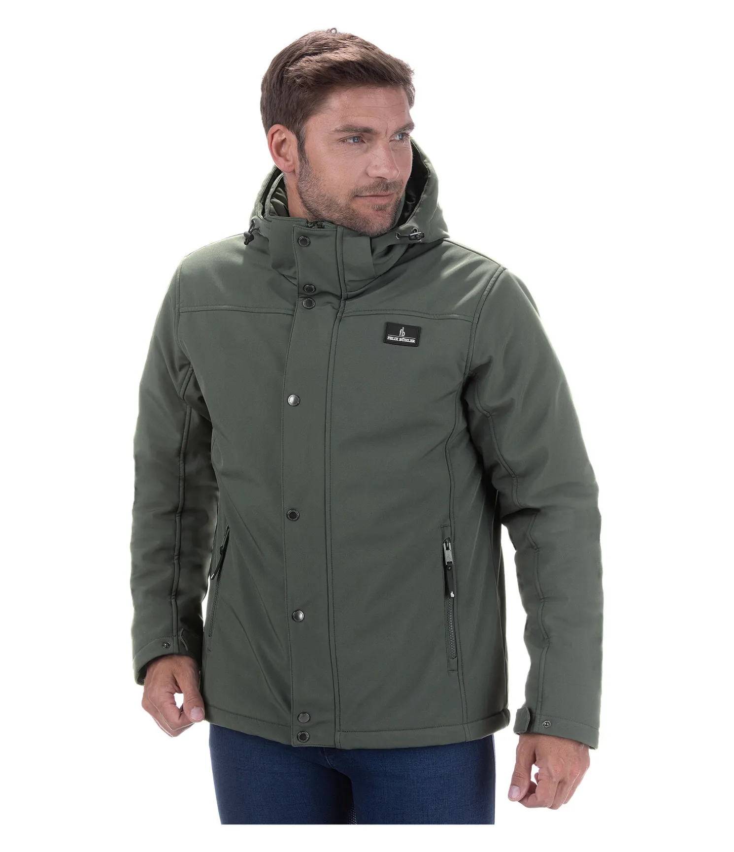 Veste softshell chaude avec col montant et capuche amovible. Matière déperlante, coupe-vent et respirante. Fermeture à glissière double sens dissimulée. 2 poches latérales zippées. Badge Felix Bühler sur la poitrine. Bas des manches élastiqué et ajustable. Taille avec cordon de serrage. 94 % polyester, 6 % élasthanne.