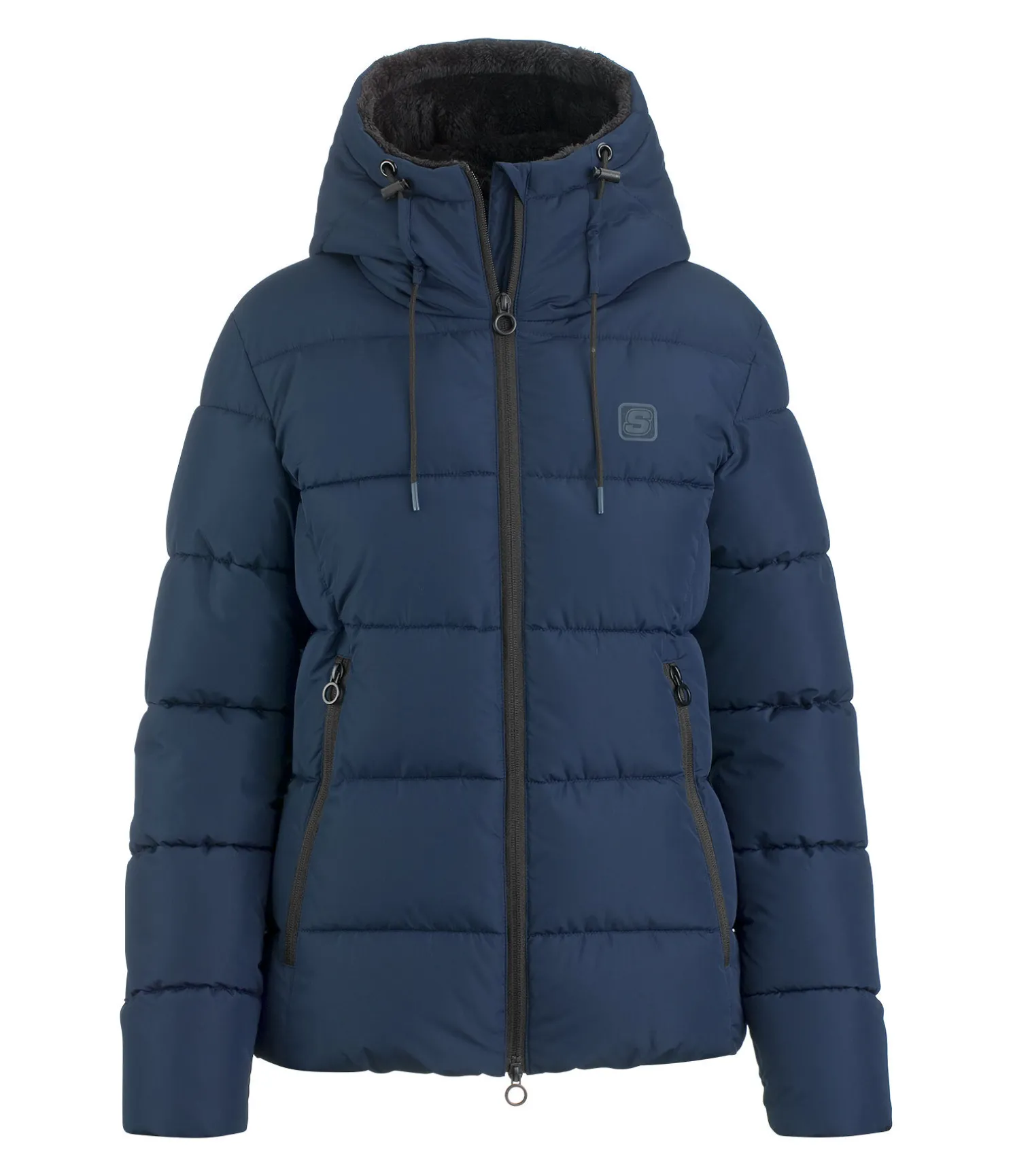 Veste matelassée chaude avec garnissage particulièrement doux imitation duvet. Capuche réglable extra haute et doublée en polaire Teddy avec bouton-pression pour être fixée dans le dos. Fermeture à glissière double sens avec sous-patte et protège-menton. 2 poches latérales zippées et 1 poche intérieure. Bord élastiqué sur le bas des manches et à la taille. Badge STEEDS sur la poitrine. 100 % polyester.