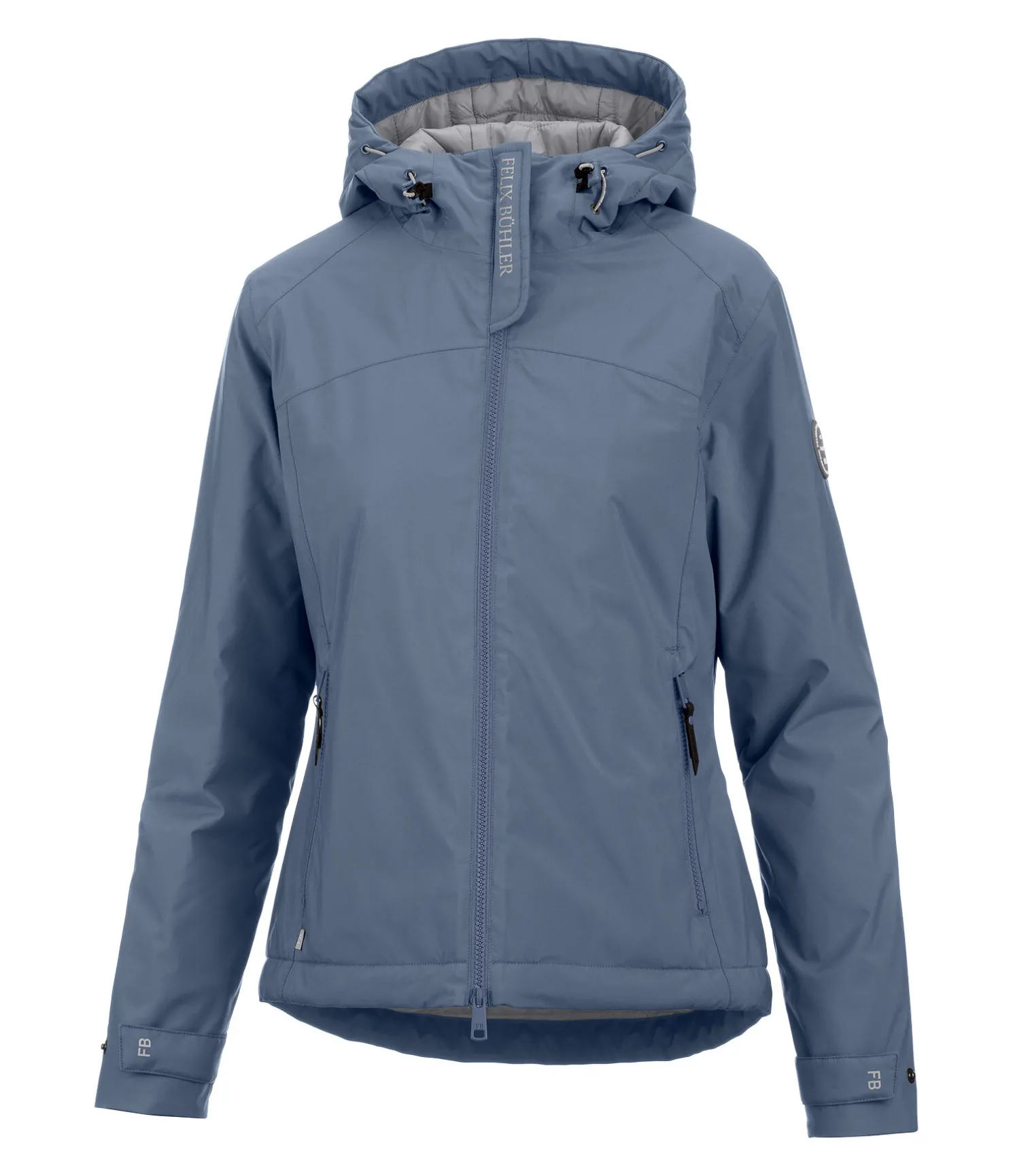 Courte veste d’équitation technique avec garnissage chaud en imitation duvet. Imperméable (10.000 mm), coupe-vent et respirante. 2 poches zippées devant, 1 poche intérieure zippée, fermeture à glissière double sens avec sous-patte, taille et bas des manches réglables, col haut avec capuche rembourrée réglable et pouvant être fixée dans le dos. Badge Felix Bühler sur la manche et imprimé réfléchissant Felix Bühler sur le col. 100 % polyester.