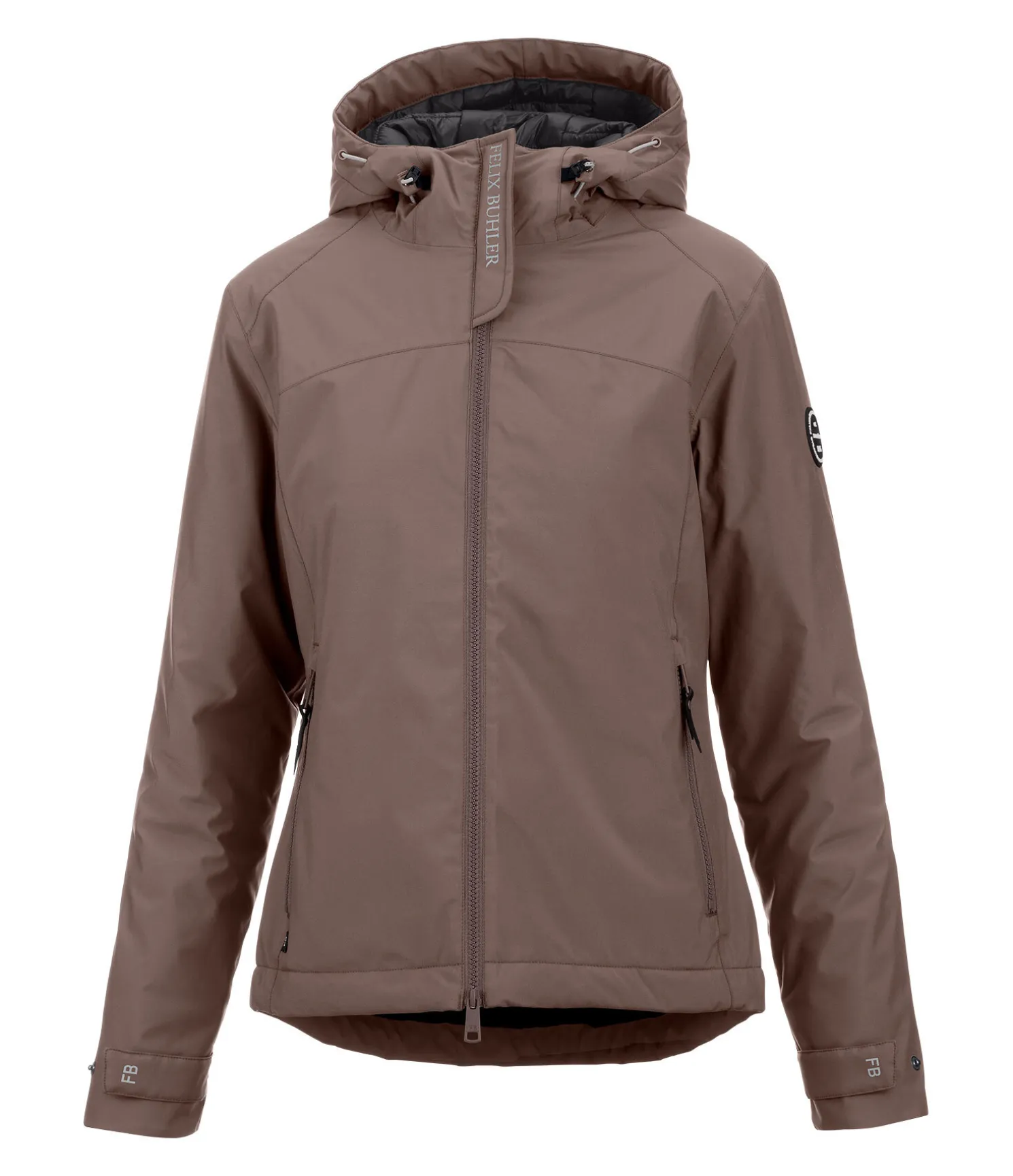 Courte veste d’équitation technique avec garnissage chaud en imitation duvet. Imperméable (10.000 mm), coupe-vent et respirante. 2 poches zippées devant, 1 poche intérieure zippée, fermeture à glissière double sens avec sous-patte, taille et bas des manches réglables, col haut avec capuche rembourrée réglable et pouvant être fixée dans le dos. Badge Felix Bühler sur la manche et imprimé réfléchissant Felix Bühler sur le col. 100 % polyester.
