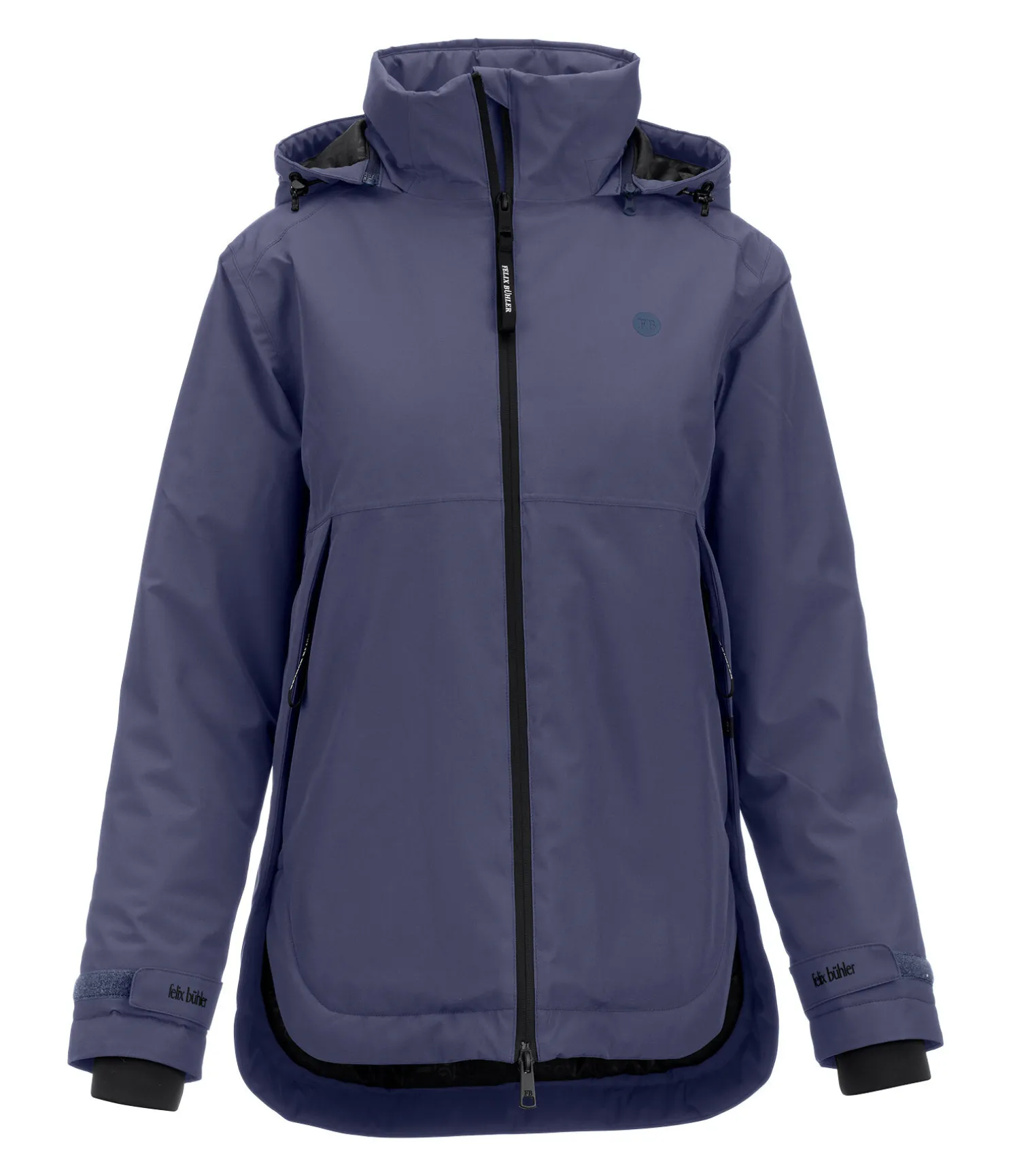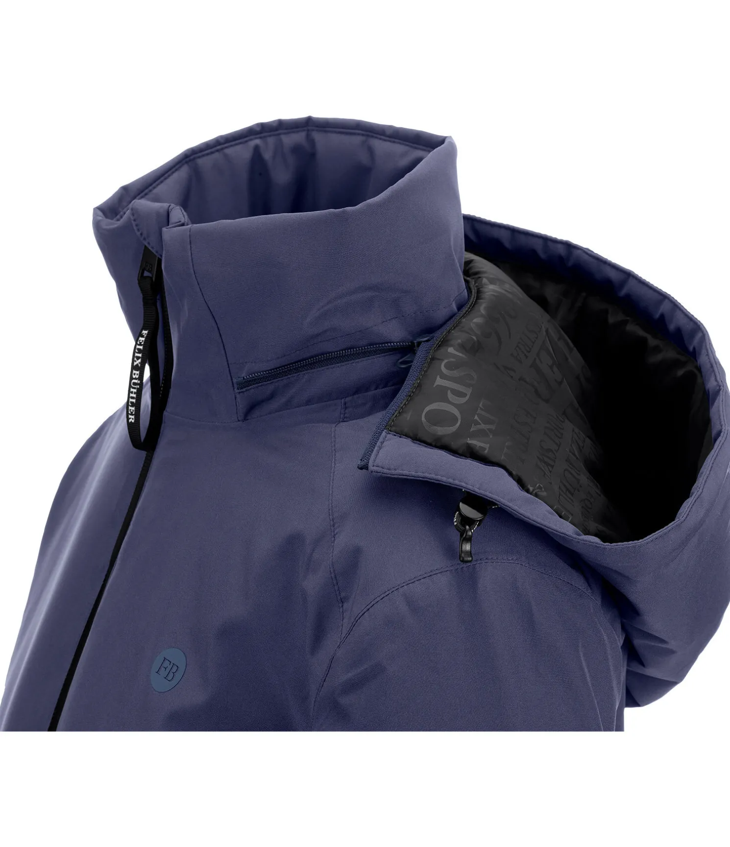 Veste d’équitation avec doublure chaude. Matière respirante, imperméable (10.000 mm) et coupe-vent. Col montant. Capuche amovible et réglable. Bouton-pression pour fixer la capuche dans le dos. Fermeture à glissière double sens étanche avec sous-patte. 2 poches avant zippées et dissimulées. 1 poche intérieure zippée. Bas des manches ajustable, élastiqué et coupe-vent. Bouton-pression sur chaque côté. Coupe plus longue à l’arrière. Imprimé Felix Bühler sur les manches, la capuche et les poignets. 100 % polyester.