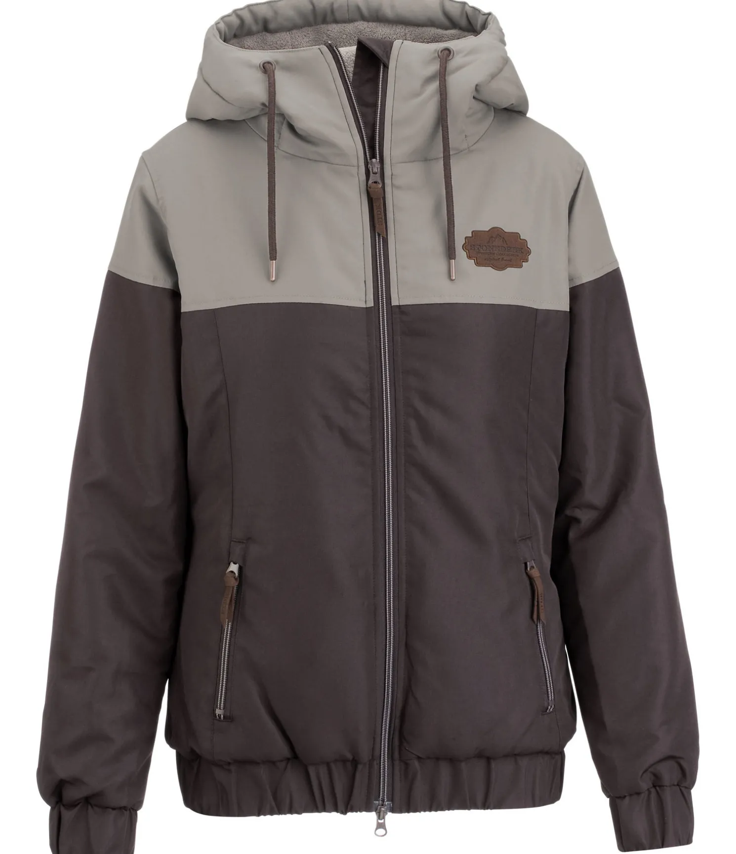 Veste d’hiver moderne, déperlante et coupe-vent. Couleur contrastante au niveau des épaules. Légèrement ajustée et couvrant les hanches. Bas de veste et poignets élastiqués pour un confort optimal. Doublure en polaire Teddy douce. Logo en synthétique. 2 poches avant zippées, fermeture à glissière double sens devant. 100 % polyester.