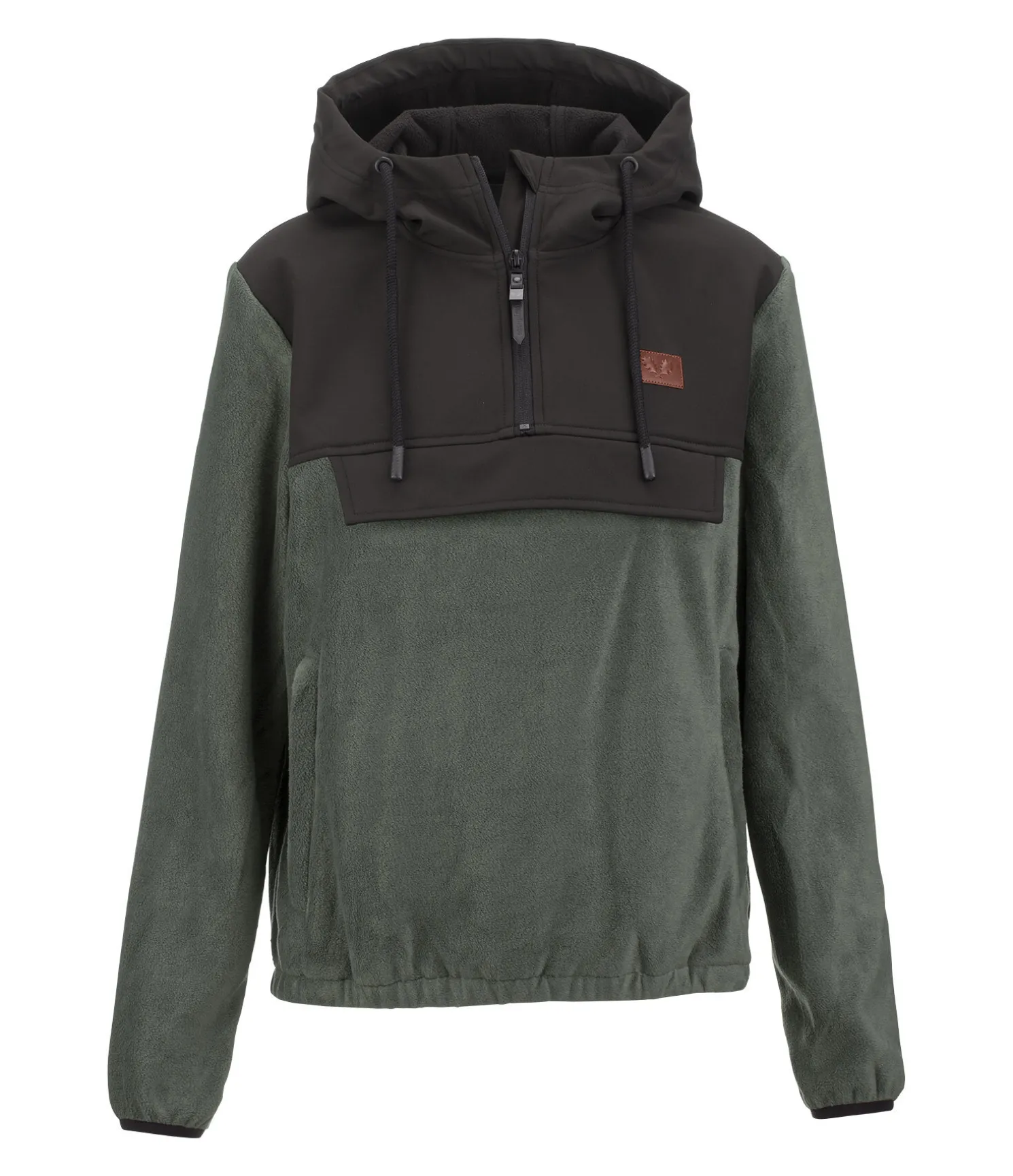 Veste décontractée à enfiler en polaire douce avec inserts en softshell déperlants et coupe-vent. Capuche haute en softshell. Bouton-pression pour fixer la capuche dans le dos. Idéale pour la mi-saison. Les deux poches latérales zippées et une grande poche centrale sur la poitrine avec une patte auto-agrippante assurent assez d’espace de rangement. Confort optimal grâce aux poignets et à la taille extensibles. Softshell 94 % polyester, 6 % élasthanne, polaire 100 % polyester.