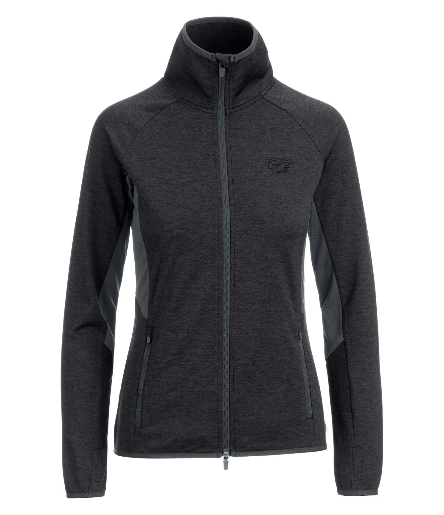 Veste douce et extensible en stretch Performance chiné. Respirante et à séchage rapide. Inserts en mesh sous les bras et sur les côtés, intérieur molletonné, 2 poches zippées devant, fermeture à glissière double sens avec protège-menton, bordure élastiquée en bas des manches, au col et à la taille. 92 % polyester, 8 % élasthanne.