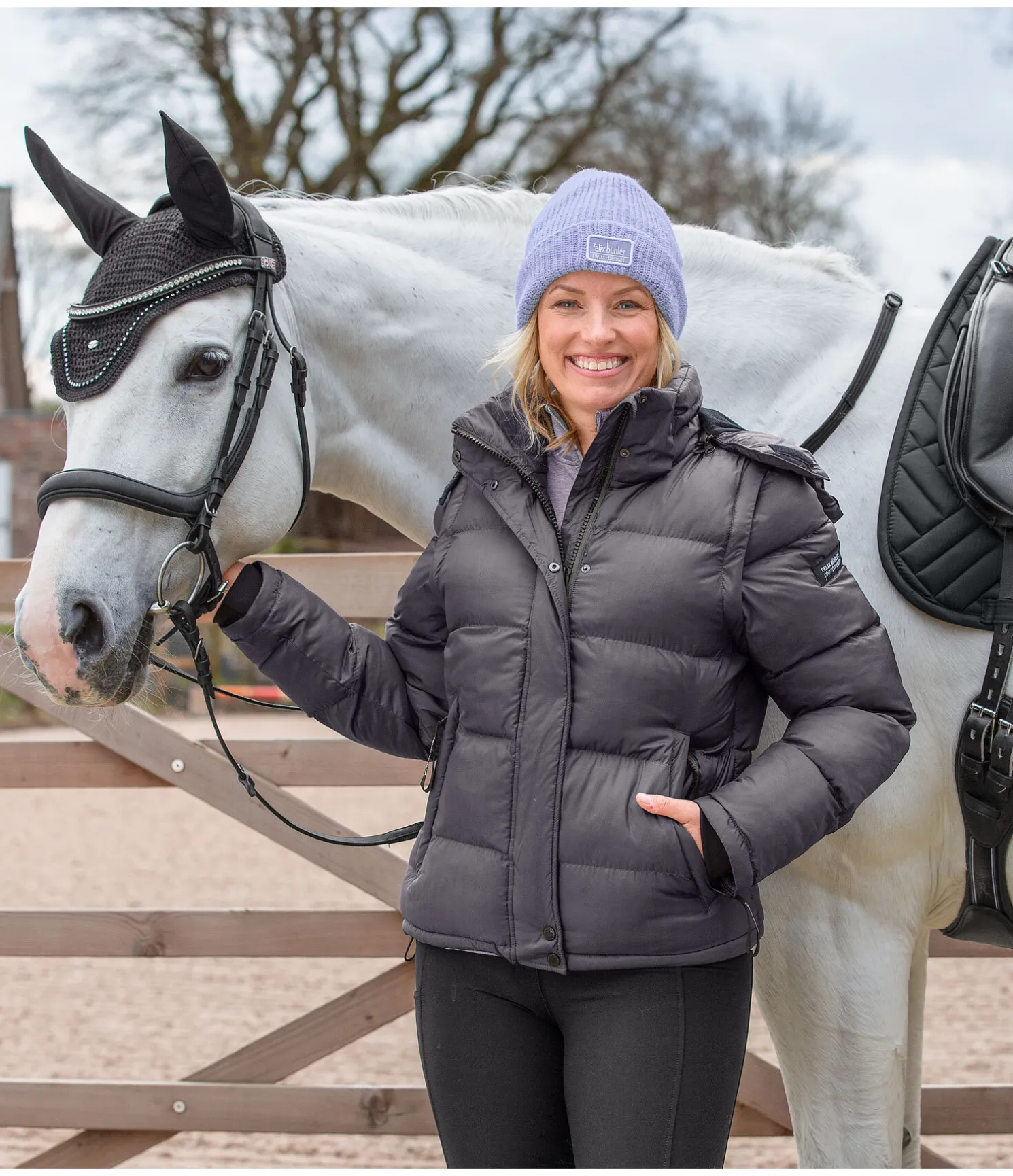Une veste et un gilet en une seule pièce ! Veste d’équitation chaude avec manches amovibles zippées. Garnissage doux imitation duvet. Col montant. Capuche doublée en polaire, amovible et ajustable par cordon de serrage. Bouton-pression pour fixer la capuche dans le dos. Fermeture à glissière double sens dissimulée. 2 poches avant doublées en polaire, zippées et dissimulées. Badge Felix Bühler sur le bras. Finition en bord-côte sur le bas des manches. Taille ajustable par cordon de serrage. 100 % polyester.