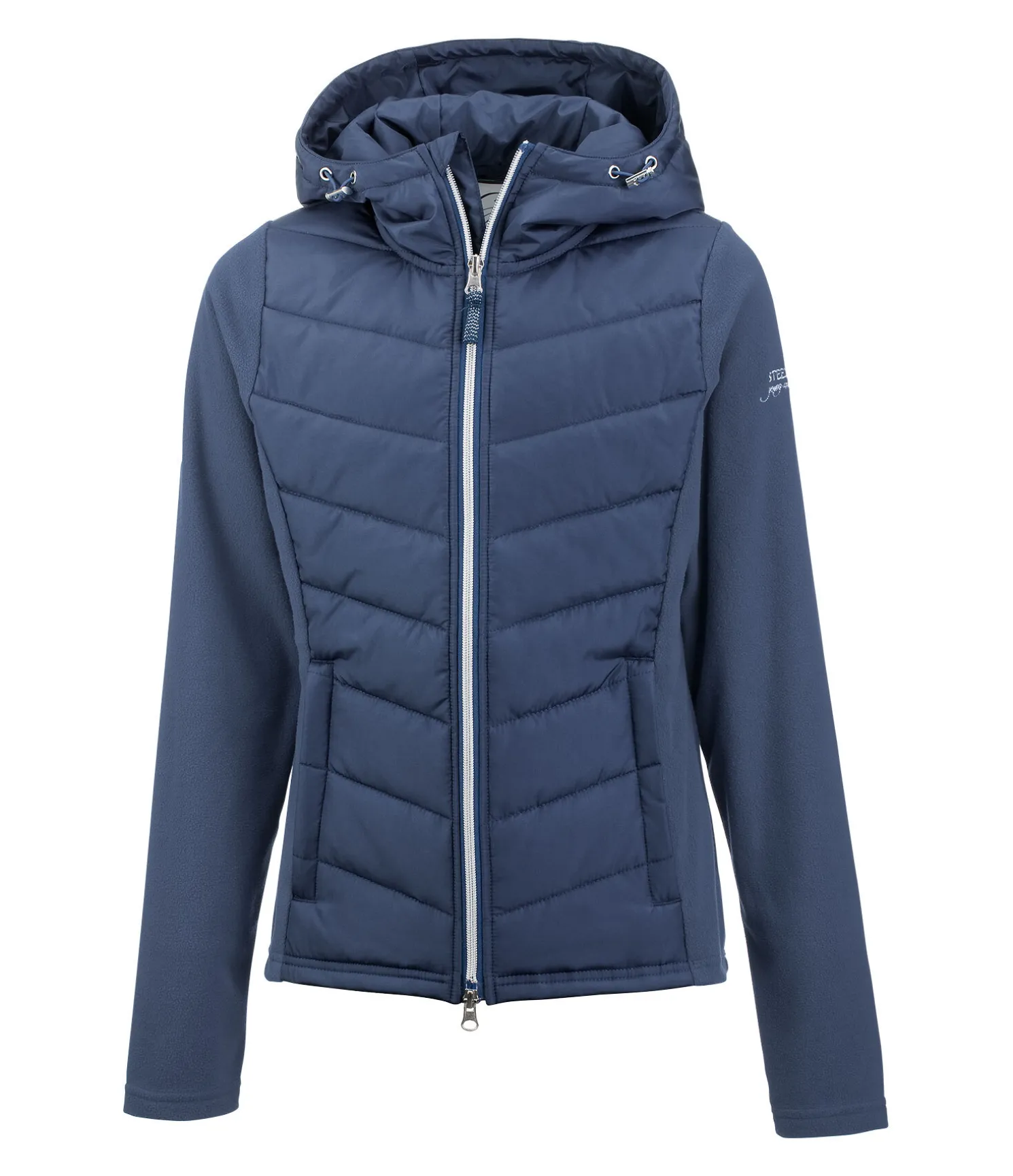 Veste bi-matière douce et molletonnée. Polaire sur les manches, au dos et sur les côtés, combinée à une matière en microfibre légèrement matelassée à l’avant. Capuche ajustable dotée d’un système de fixation dans le dos par bouton-pression. Coupe légèrement plus longue à l’arrière. Fermeture à glissière double sens avec protège-menton. Deux poches latérales zippées dissimulées. Manches raglan. Logo STEEDS brodé sur la manche. 100 % polyester.