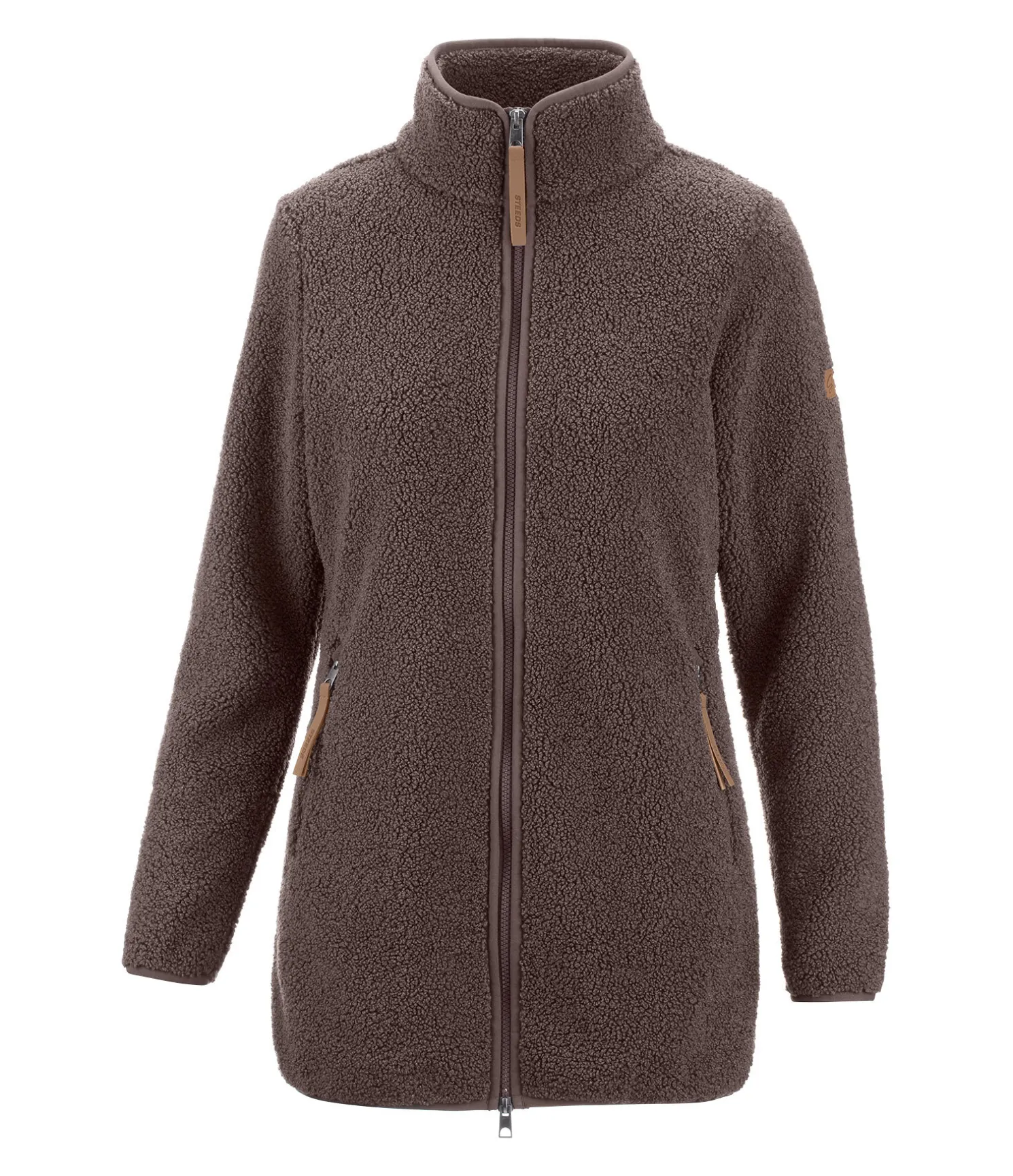 Veste longue en polaire Teddy extra-douce. Avec col montant et coupe ajustée. Fermeture à glissière double sens avec sous-patte, 2 poches zippées devant, bas des manches, col et taille élastiqués. Badge STEEDS sur la manche. 100 % polyester.