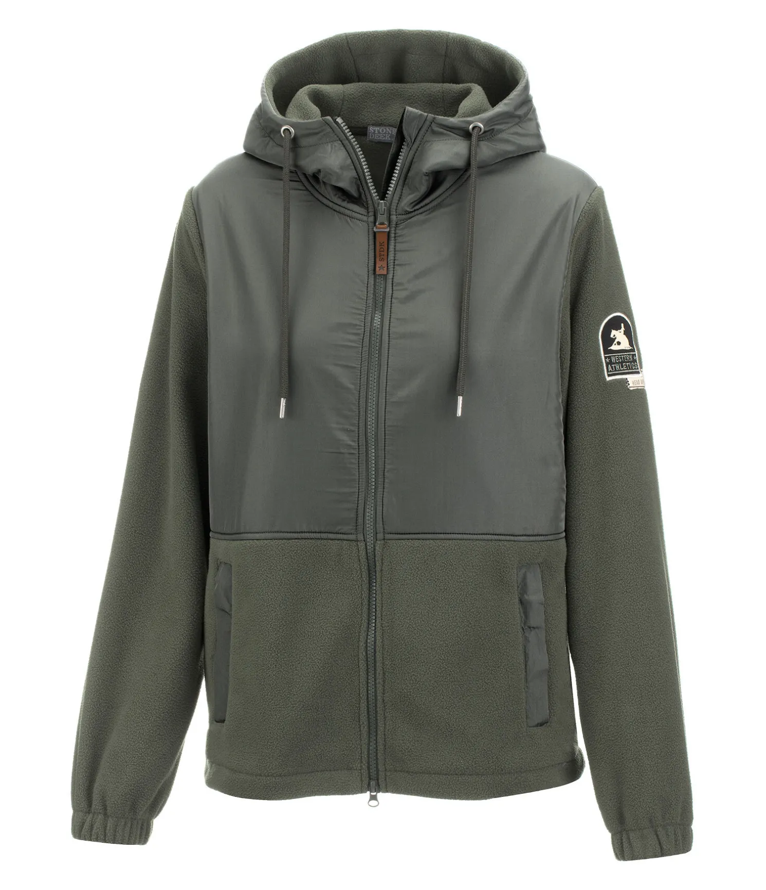 Veste polaire confortable. Coupe droite. Capuche et logo western brodé sur la manche. Coupe-vent et respirante. Bas de manche élastiqués et fermeture à glissière double sens. 100 % polyester.