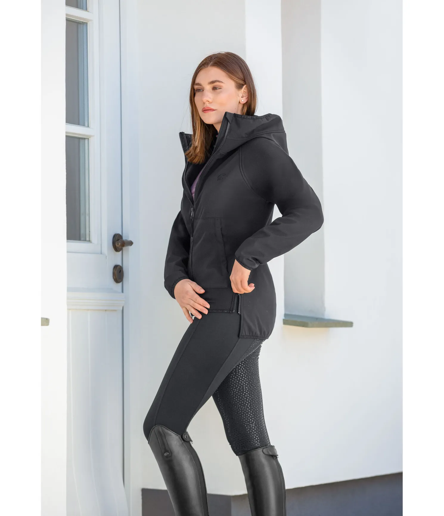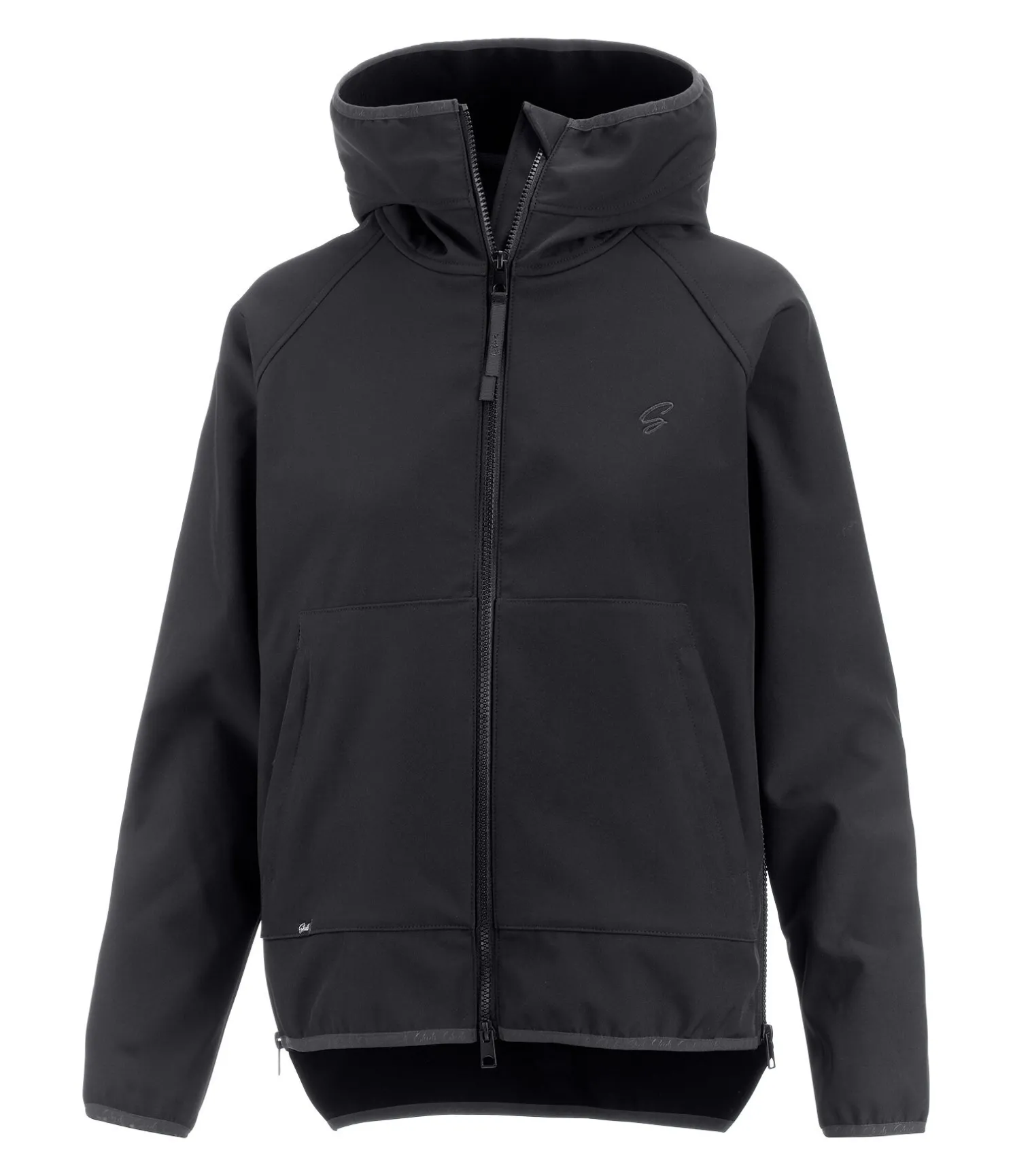 Veste softshell sportive à capuche dans un look oversized coupée plus long dans le dos. Déperlante, coupe-vent et respirante. Poches raglan avec fermeture à glissière devant, capuche haute, bas des manches élastiqués et taille réglable. Fentes cavalières zippées latérales. Broderie STEEDS sur la poitrine. 94 % polyester, 6 % élasthanne.