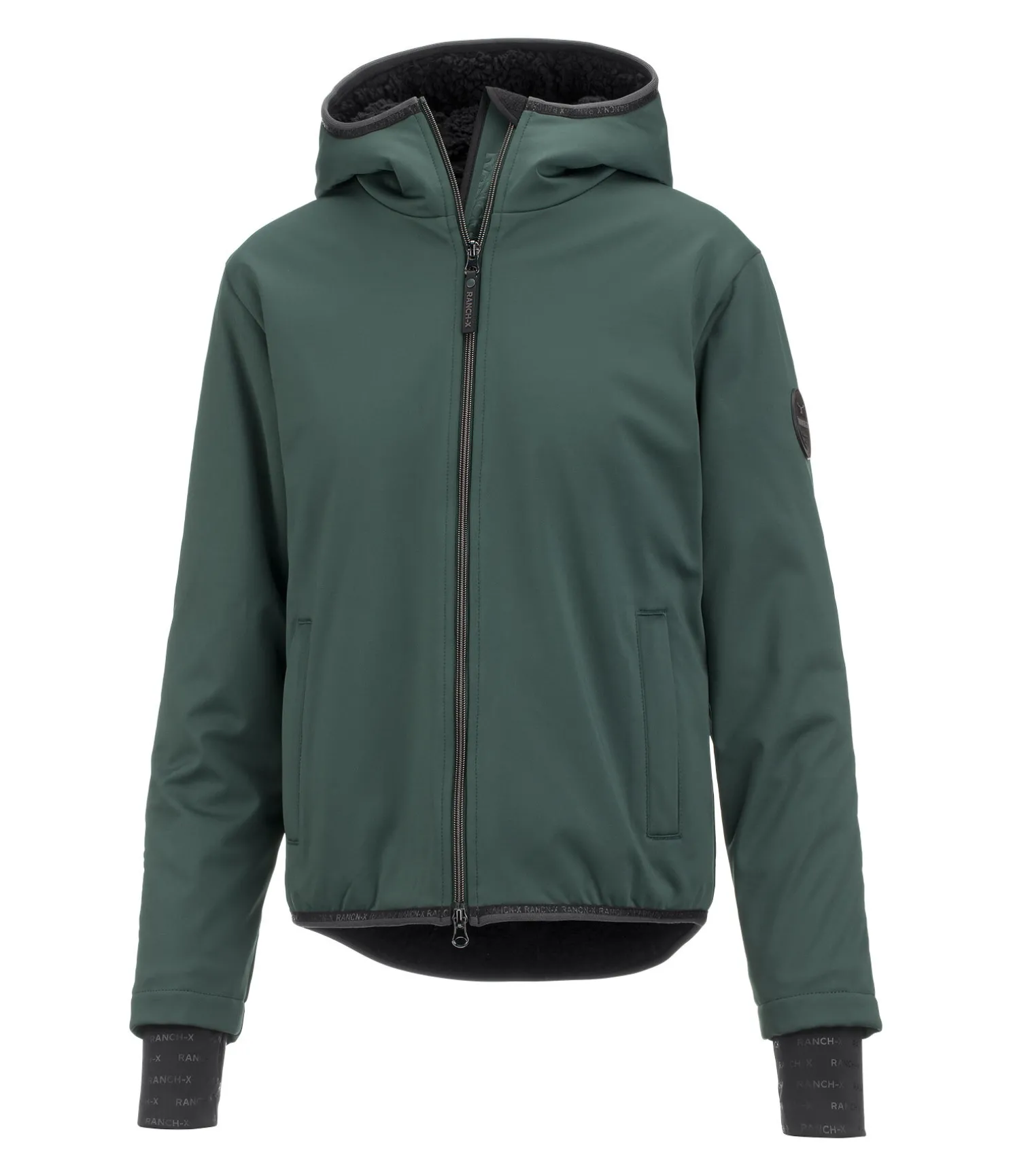 Veste softshell sportive avec doublure et capuche en polaire Teddy chaude. Matière déperlante, coupe-vent et respirante (5 000 MVP). Coupe ample et taille élastiquée garantissent un confort optimal. Fermeture à glissière double sens avec sous-patte. 2 grandes poches zippées. Poignets extensibles avec passe-pouce. Logo en relief sur la capuche et badge logo avec détails sur la manche. 100 % polyester.