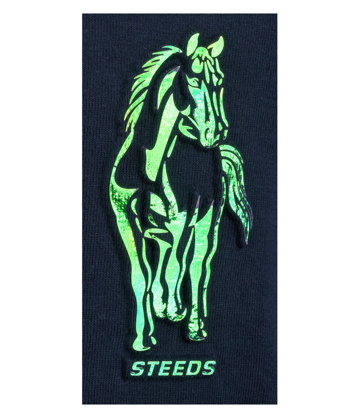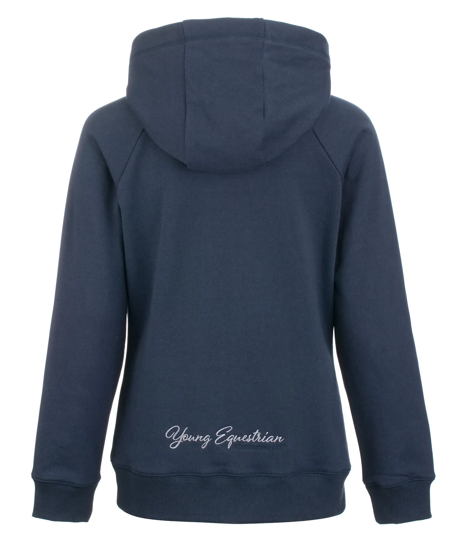 Veste sweat à capuche confortable. Fermeture à glissière bidirectionnelle. Joli imprimé cheval en relief à l’avant et slogan « Young Equestrian » au dos. Finition en maille côtelée sur le bas des manches et l’ourlet. 65 % polyester, 35 % coton.