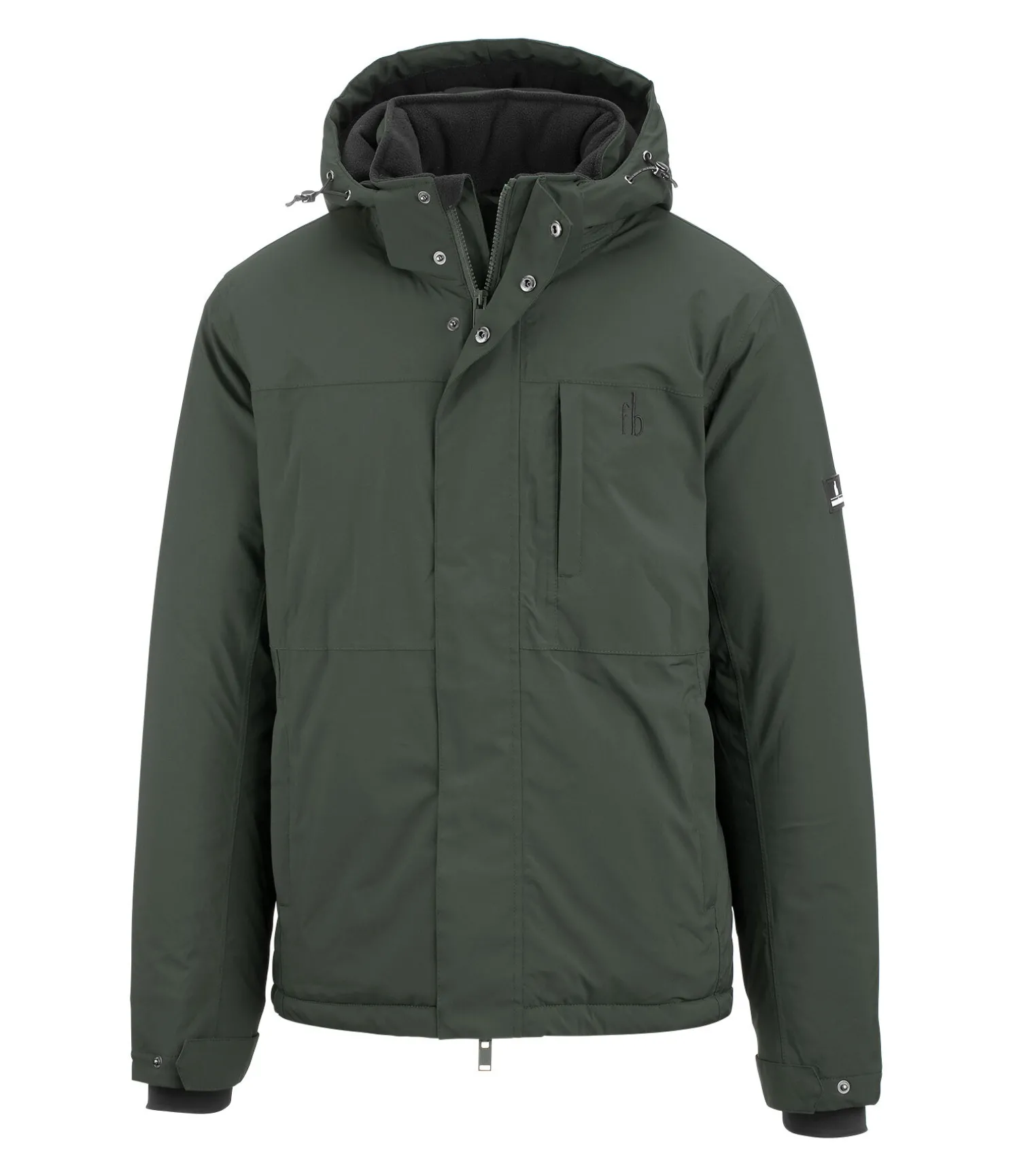 Veste à capuche d’hiver technique. Col montant. Capuche amovible zippée, ajustable et doublée en polaire. Bouton-pression pour fixer la capuche dans le dos. Matière imperméable (8.000 mm), coupe-vent et respirante. Garnissage chaud. Fermeture à glissière double sens dissimulée avec protège-menton. 2 poches latérales et 1 poche sur la poitrine zippées et dissimulées. Badge Felix Bühler sur la manche. Bas des manches avec finition bord-côtes coupe vent. Taille et bas des manches ajustables. Doublure intérieure avec motif all-over Felix Bühler. 100 % Polyester.