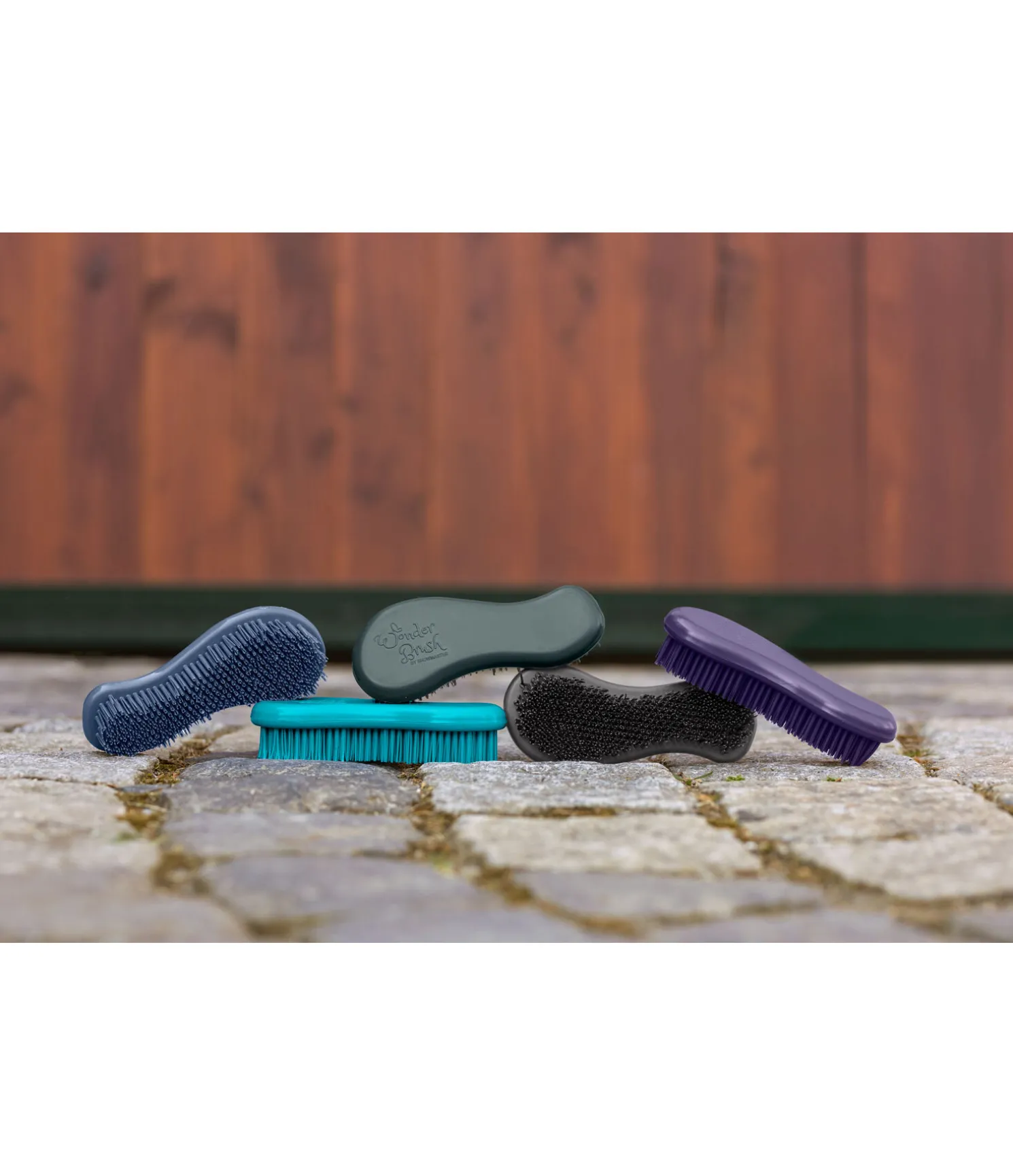 L’indispensable ! Particulièrement polyvalente et pratique. Poils spéciaux qui facilitent le nettoyage de la robe et des sabots. Forme ergonomique très agréable. Découpe permettant de brosser aussi bien des grandes que des petites parties du corps. Poils extrêmement doux pour un nettoyage ou massage des zones sensibles du corps telles que la tête ou derrière les oreilles. Également pour les chiens. 16 x 6,5 ou 5cm. Disponible en deux versions : Référence 431 964 : SOFT avec des poils souples. Pour le nettoyage des parties sensibles du corps comme la tête ou derrière les oreilles. Pour les chiens. Pour brosser les vêtements. Référence 431 965 : HARD avec des poils durs. Pour décoller sans effort les poils aggloméré par la sueur. Pour nettoyer les sabots. Dimensions : 16 x 6,5 ou 5 cm.